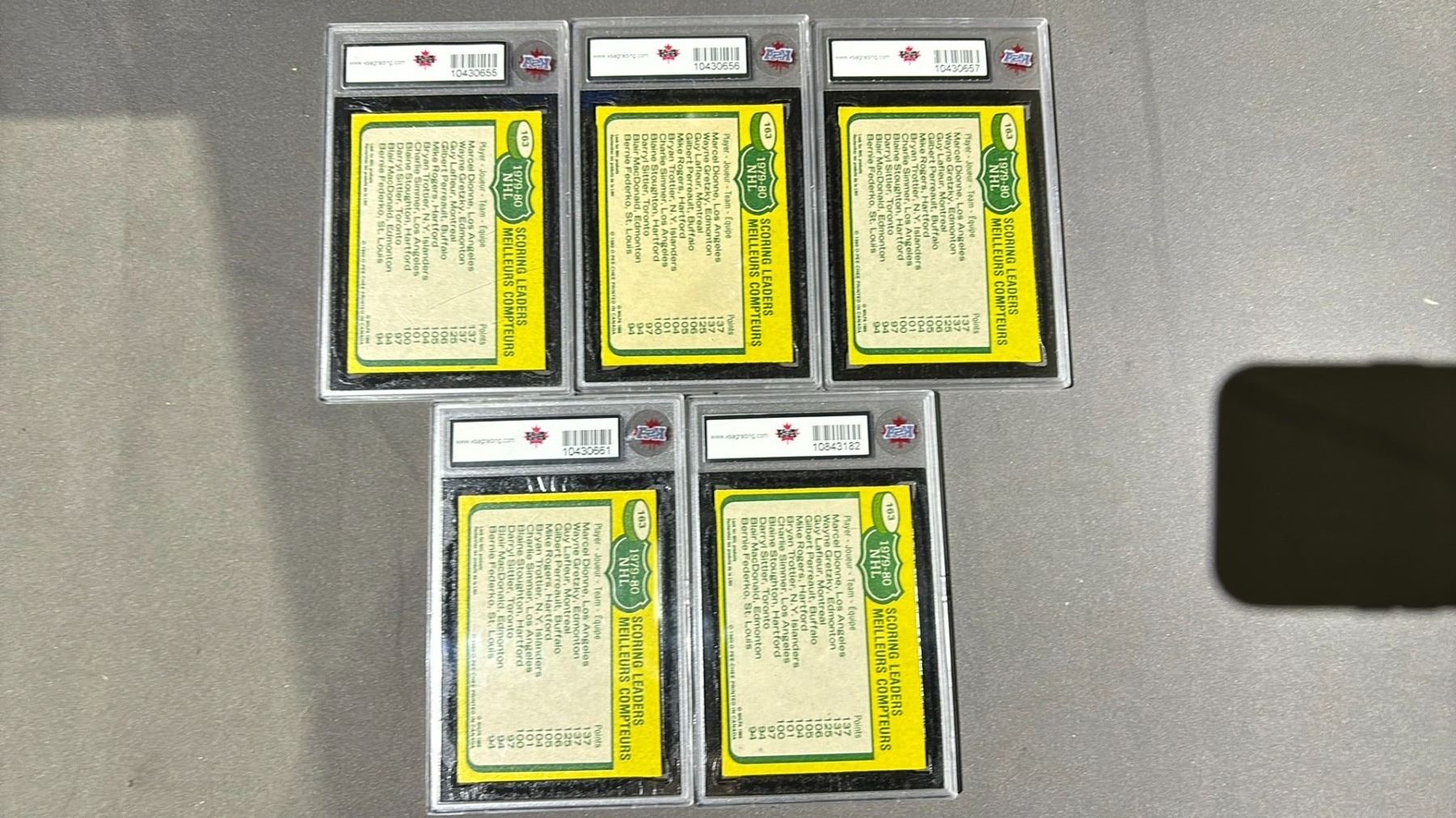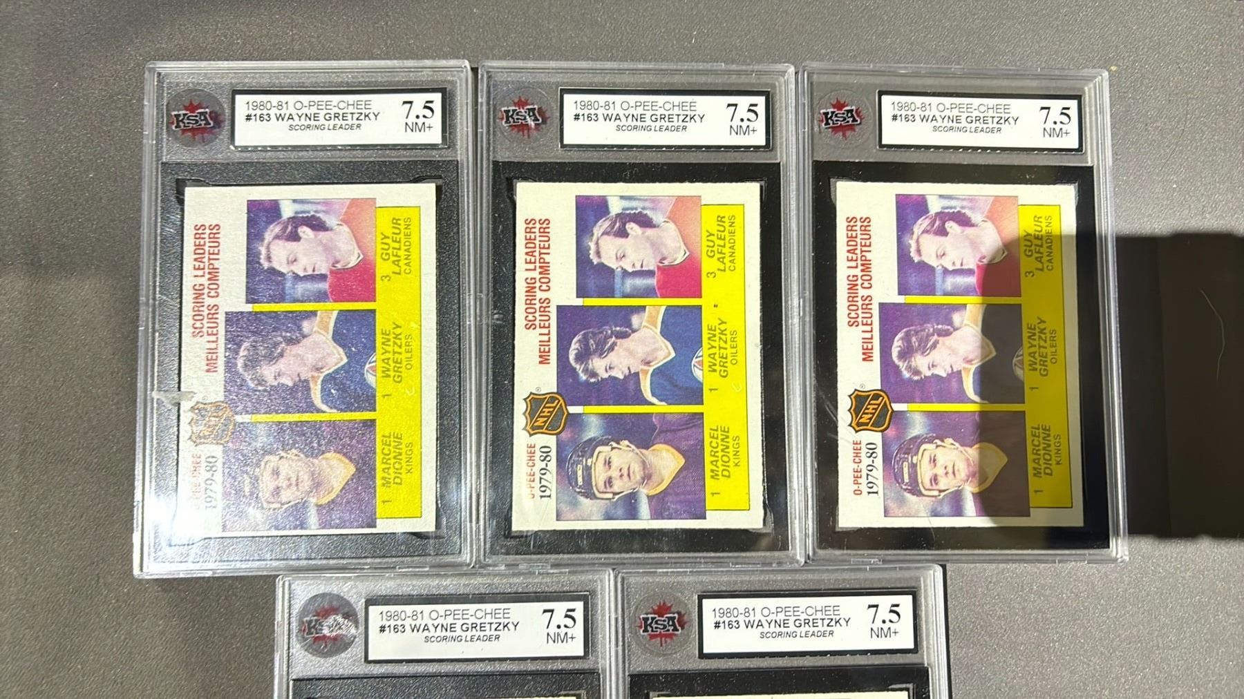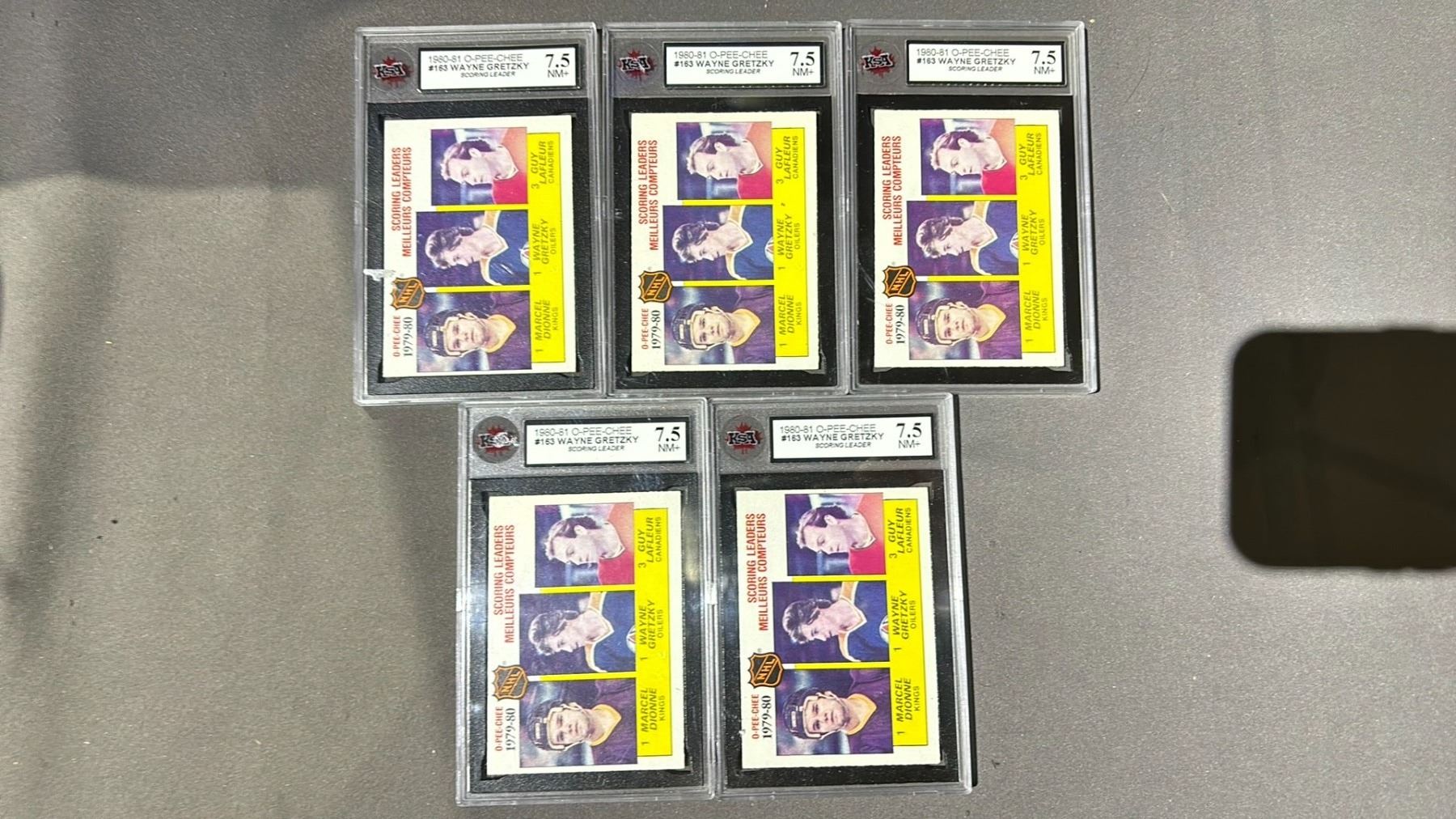 5 1980-1981 O-PEE-CHEE WAYNE GRETZKY SCORING LEADER #163, KSA GRADED 7.5NM+
