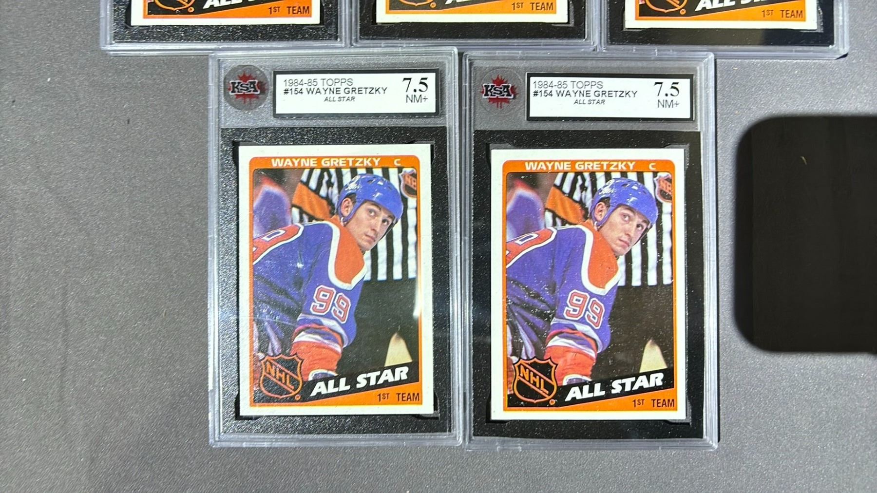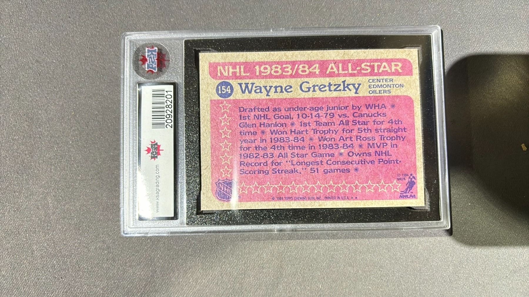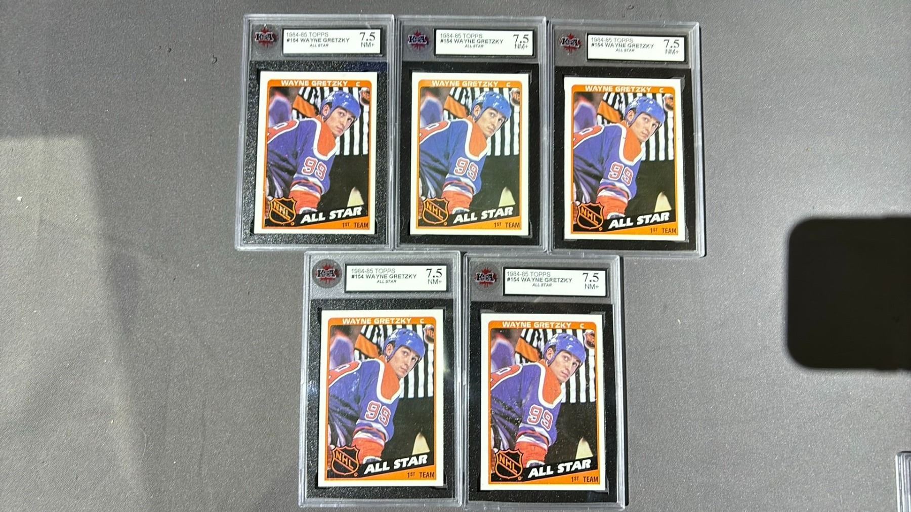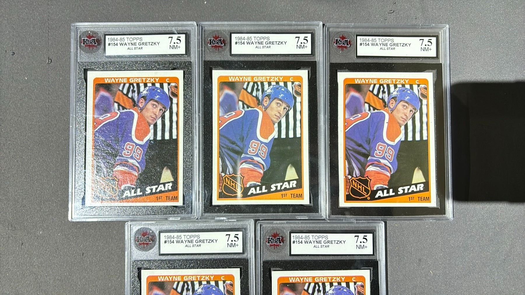 5 1984-1985 TOPPS WAYNE GRETZKY ALL STAR #154, KSA GRADED -7.5NM+