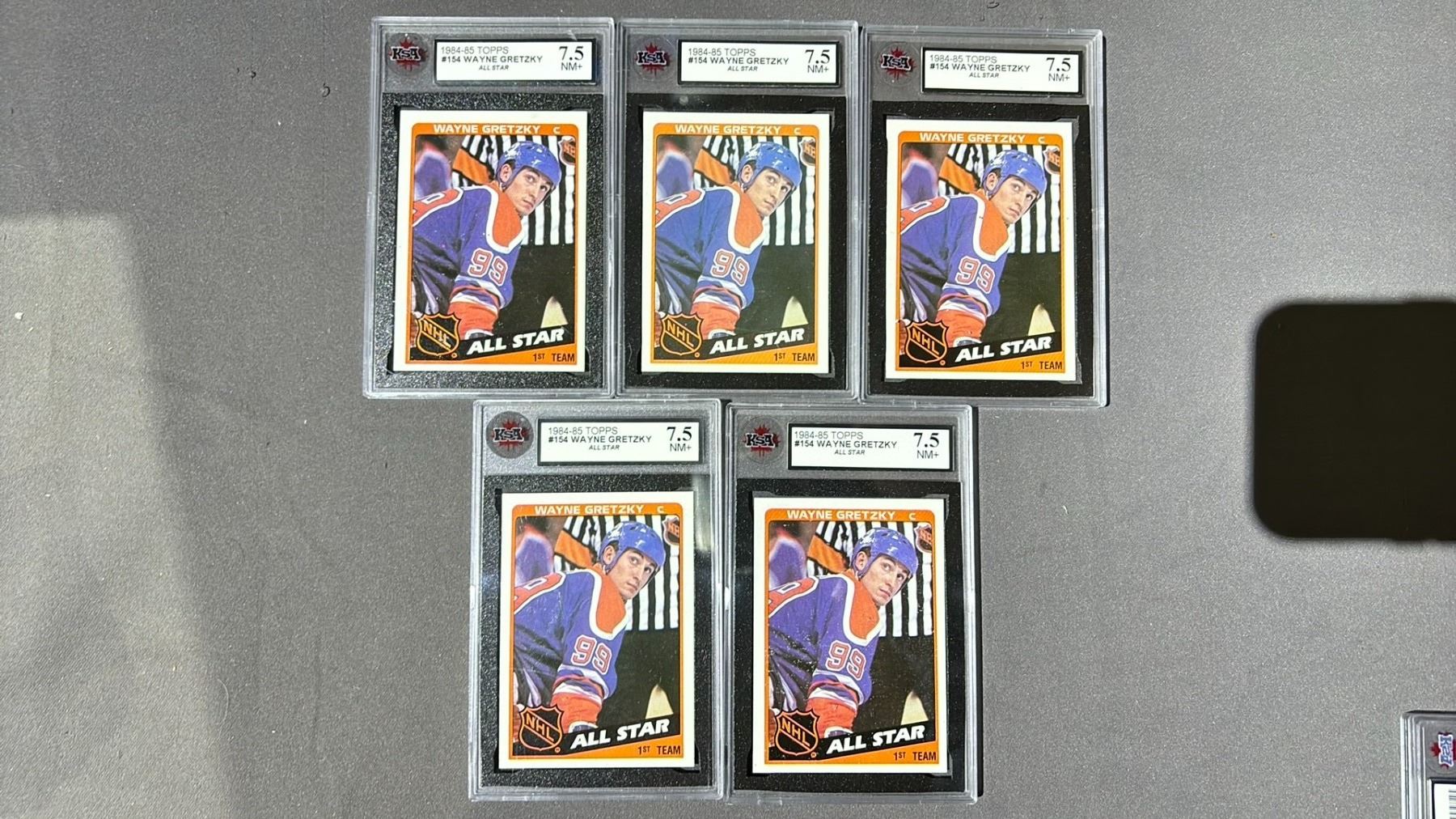 5 1984-1985 TOPPS WAYNE GRETZKY ALL STAR #154, KSA GRADED -7.5NM+