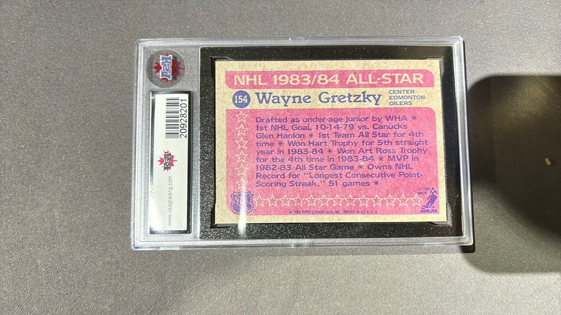 5 1984-1985 TOPPS WAYNE GRETZKY ALL STAR #154, KSA GRADED -7.5NM+