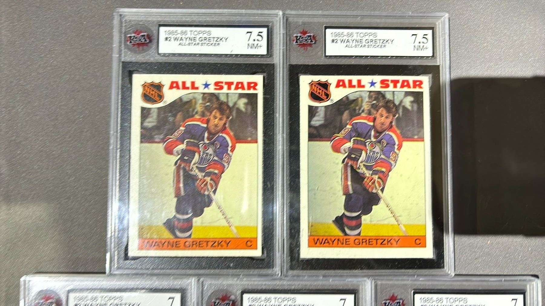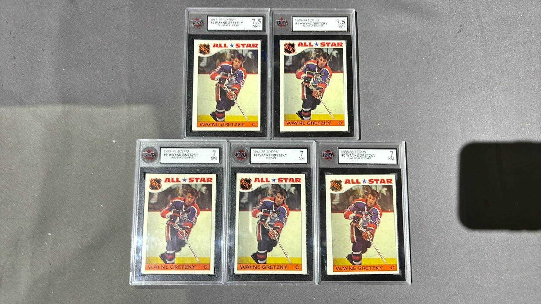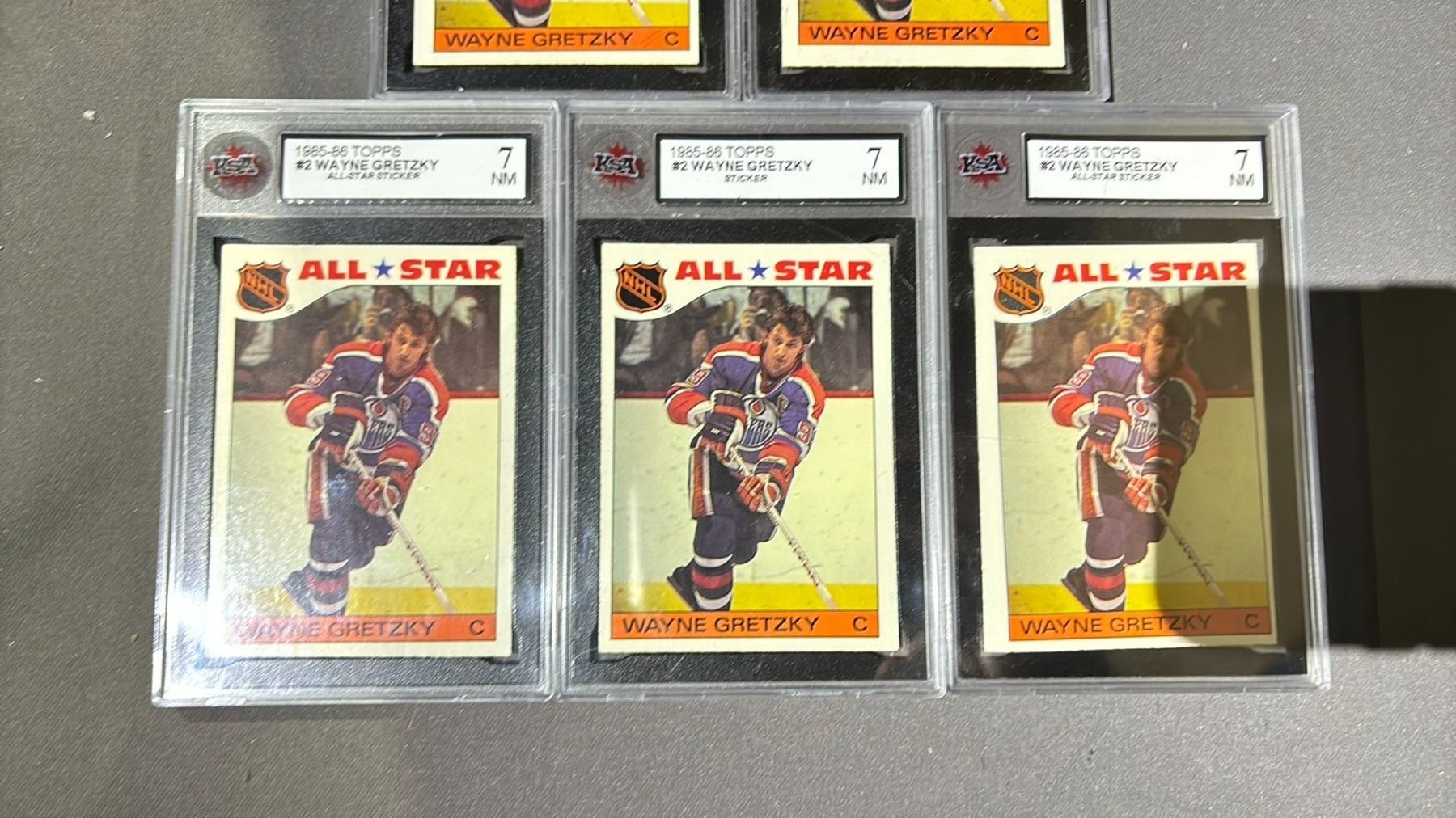 5 1985-1986 TOPPS WAYNE GRETZKY ALL STAR STICKER #2, KSA GRADED 7NM & 7.5NM+