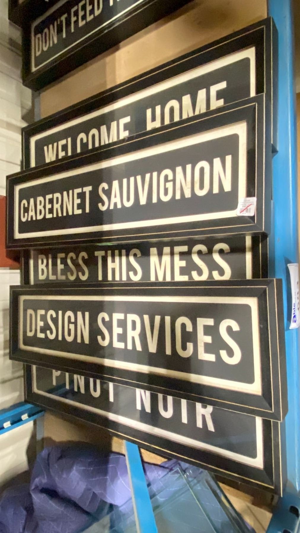 5 ASSORTED BLACK FRAMED STREET SIGN ART