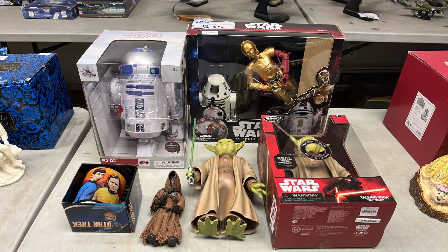 (5) ASSORTED STAR WARS COLLECTIBLES & A STAR TREK SPOCK & CAPTAIN KIRK MUG