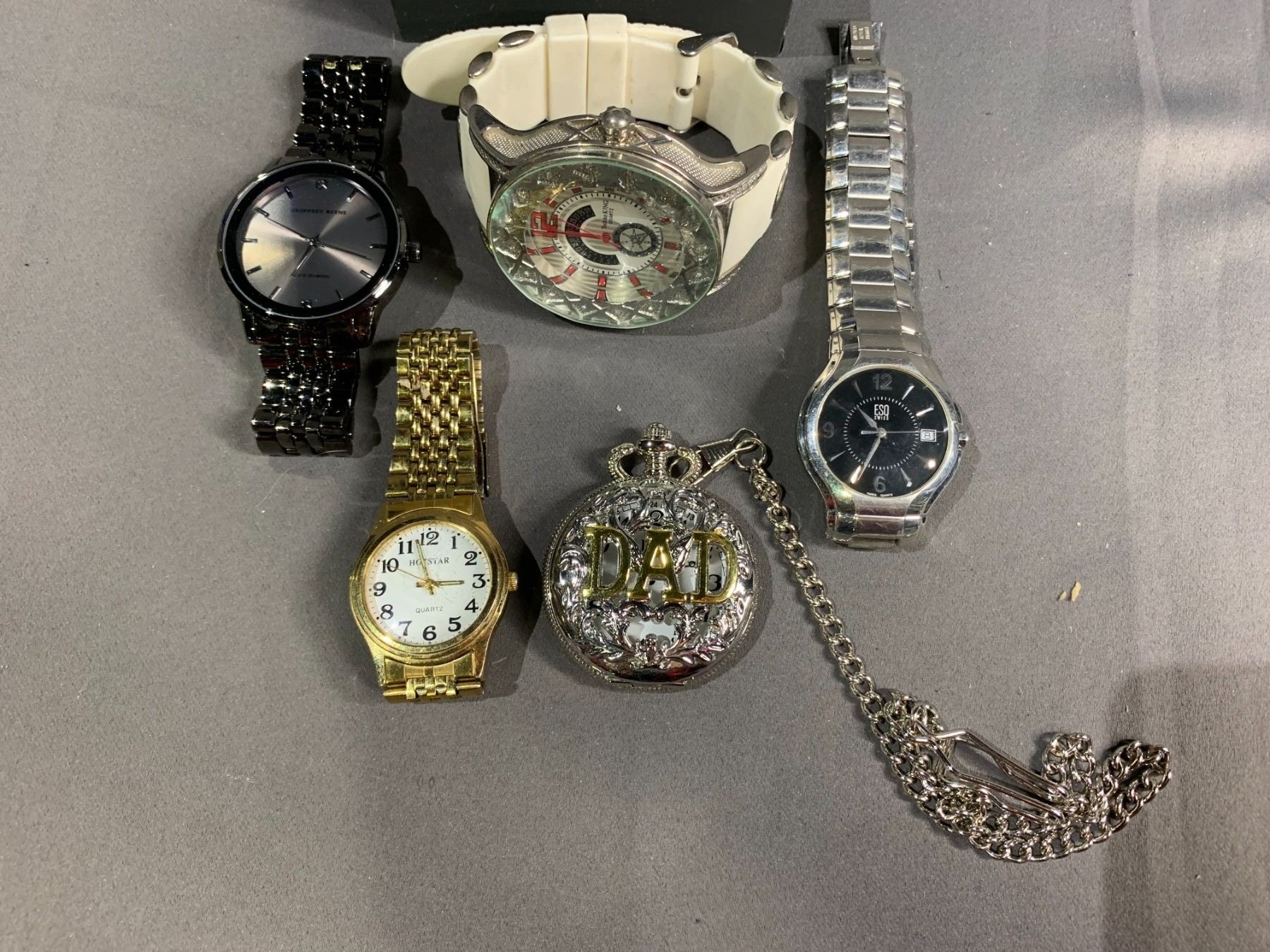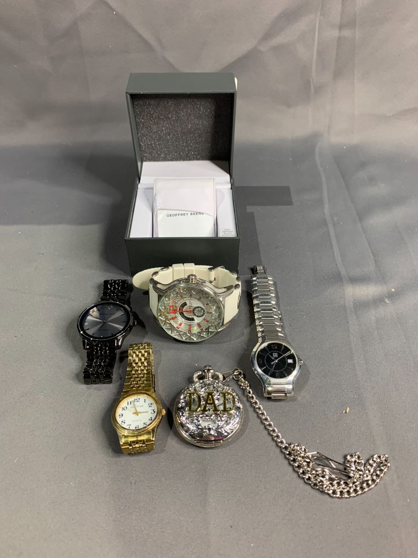 5 ASSORTED WATCHES INCLUDING; GEOFFREY BEENE, TECHNO KING, ESO SWISS & MORE