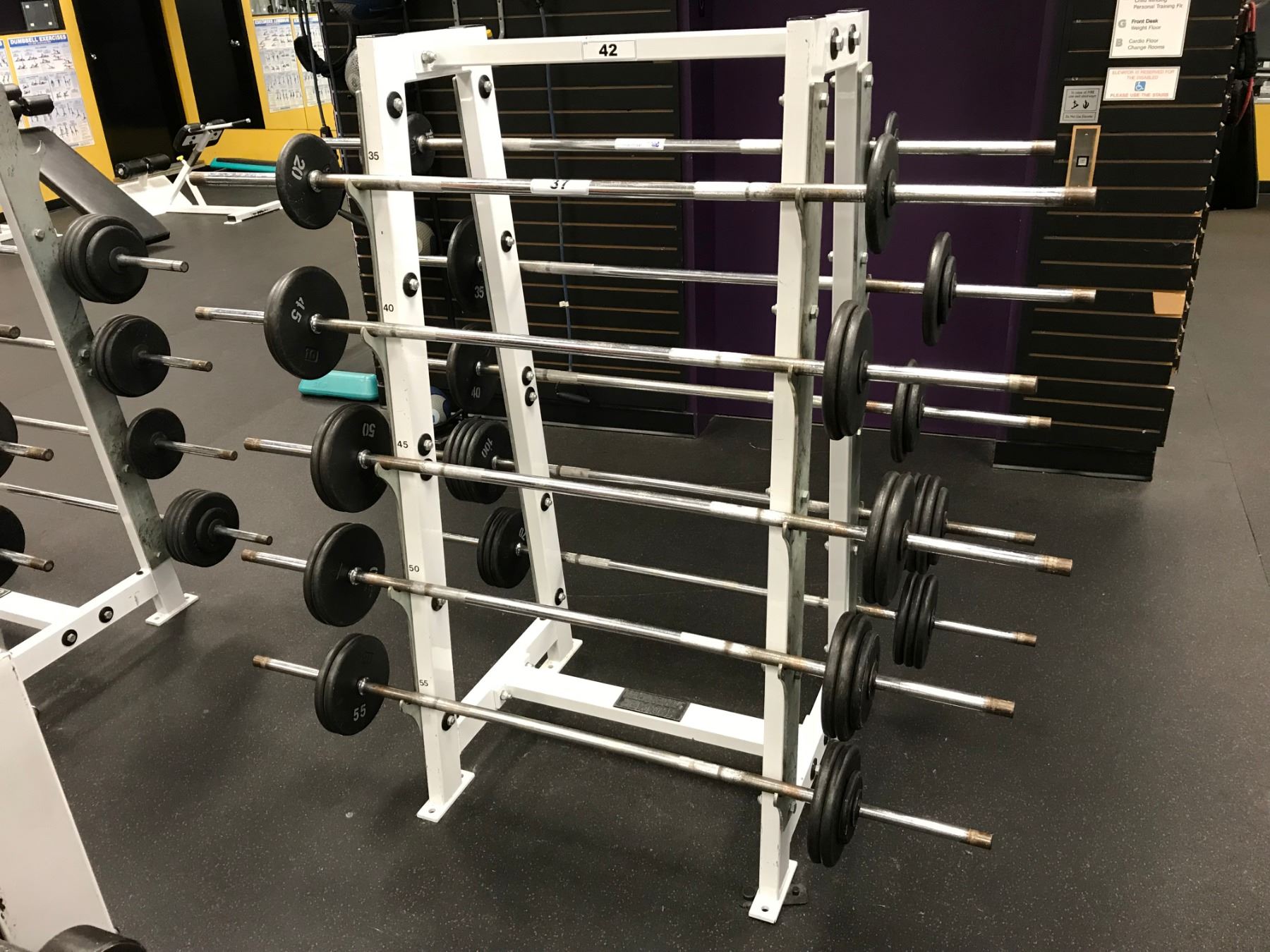5 BARBELLS WITH 20, 45, 50, 55, 60 LB WEIGHTS