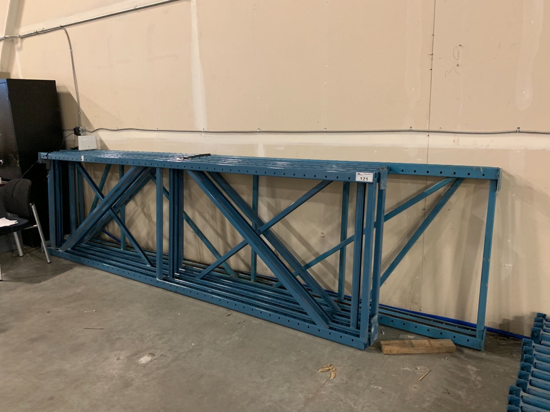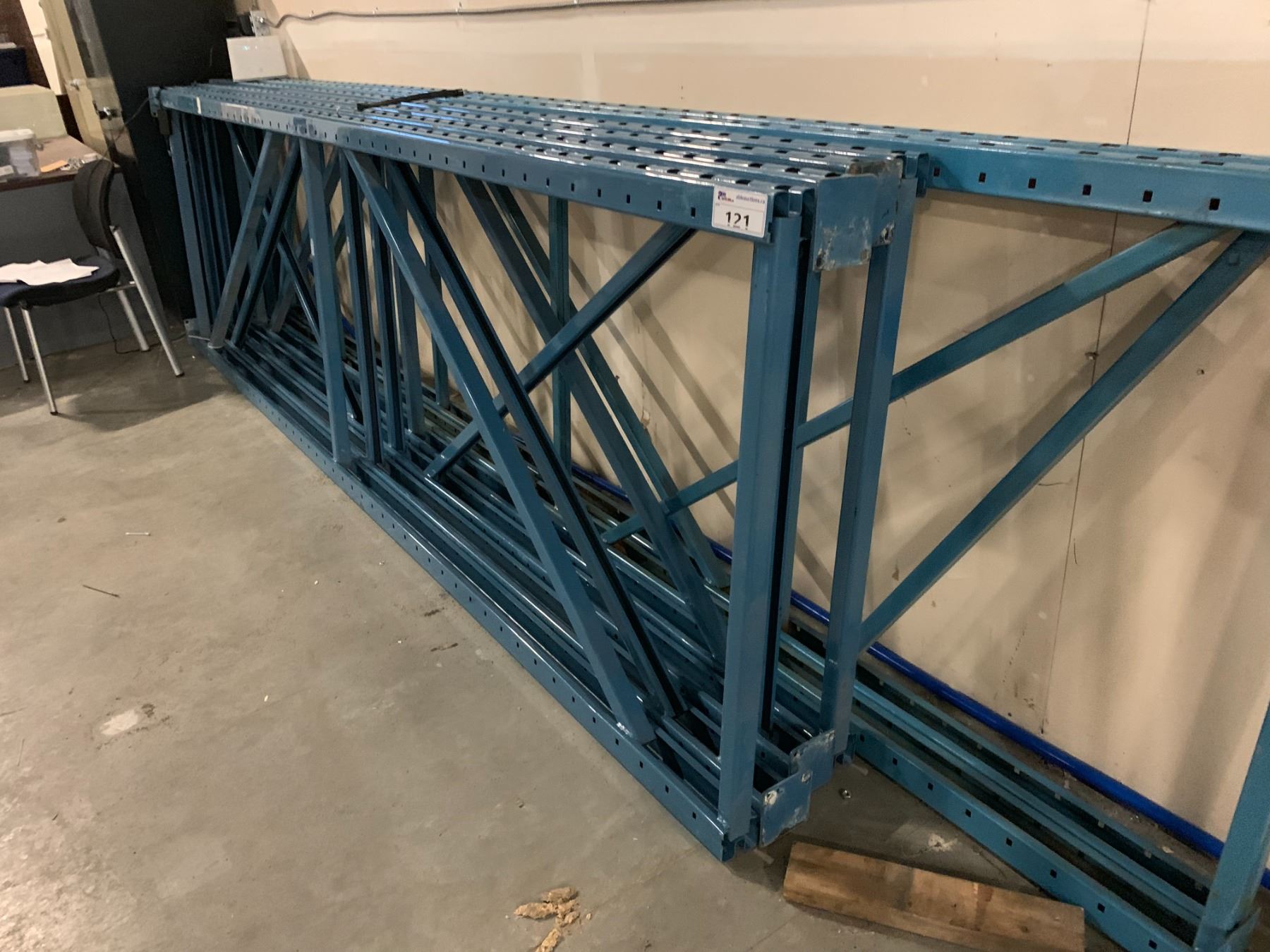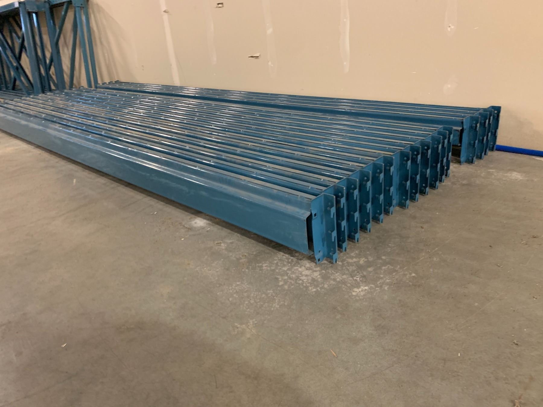 5 BAYS OF INDUSTRIAL PALLET RACKING INCLUDING 2 - 14' X 42" UPRIGHTS, 4 - 12' X 42" UPRIGHTS AND 18 - 8' X 2.5" CROSS BEAMS