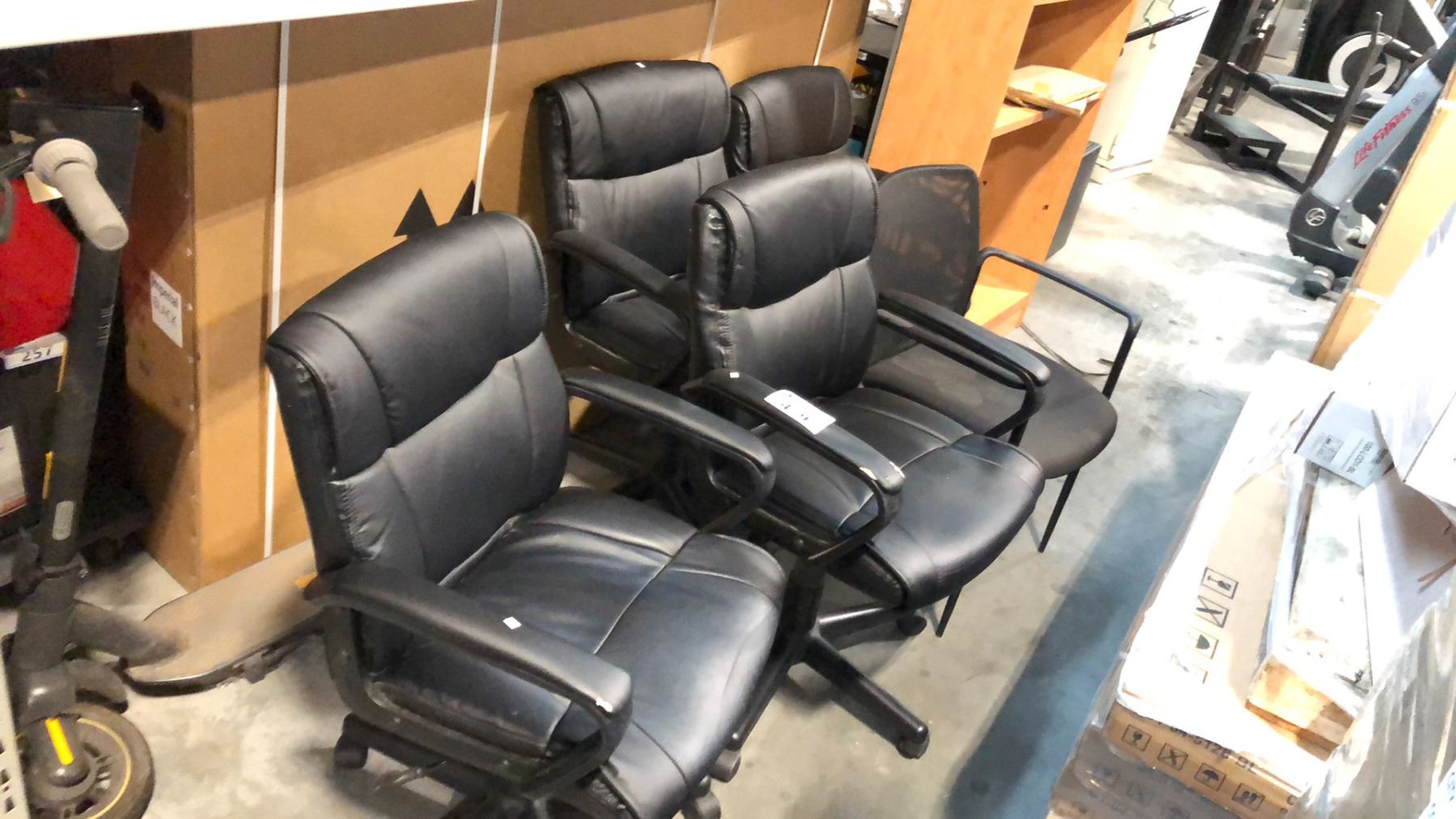 5 BLACK ASSORTED OFFICE CHAIRS W/ CONDITION ISSUES-MUST TAKE ALL