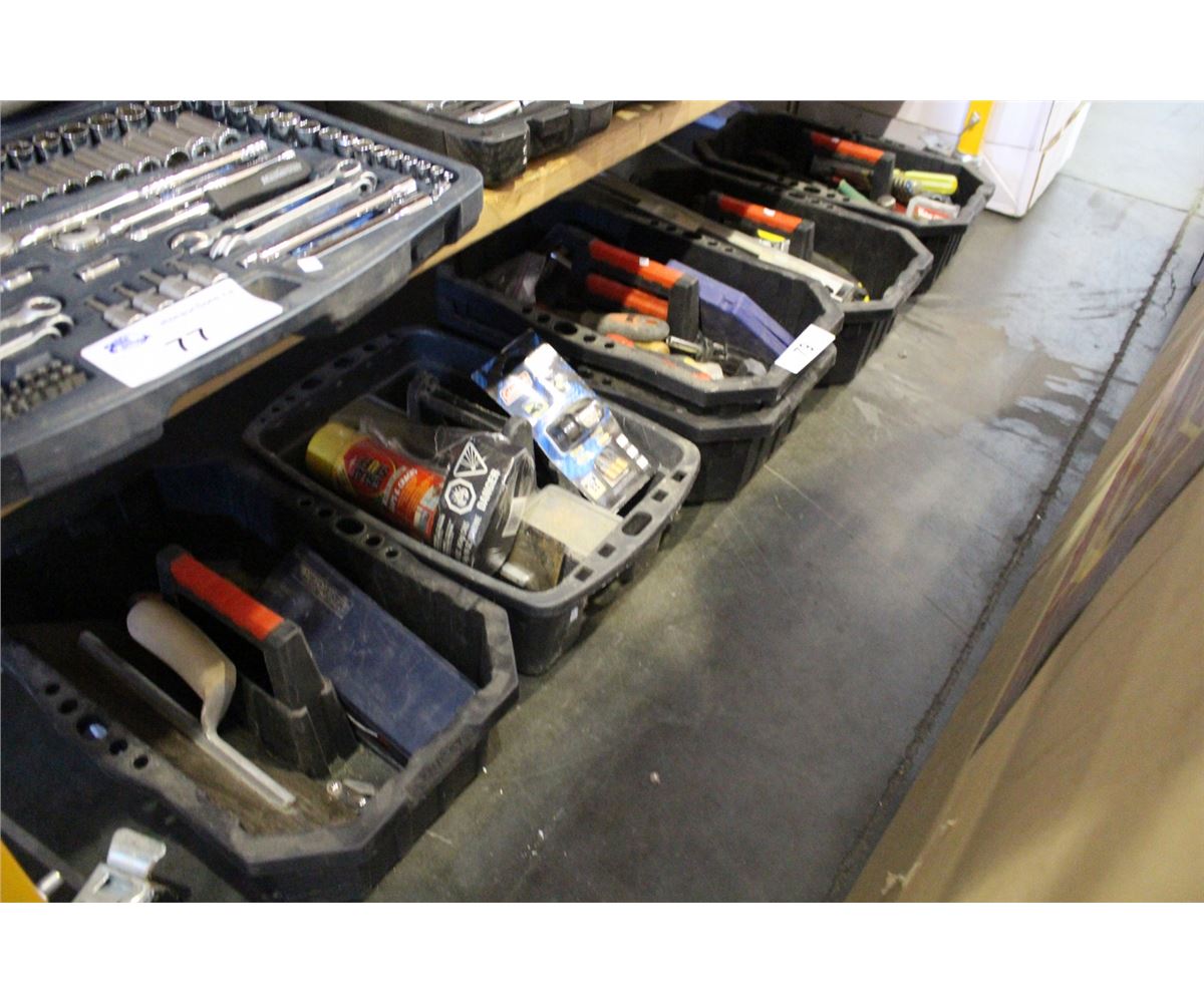 5 BLACK WORK BOXES FILLED WITH ASSORTED TOOLS