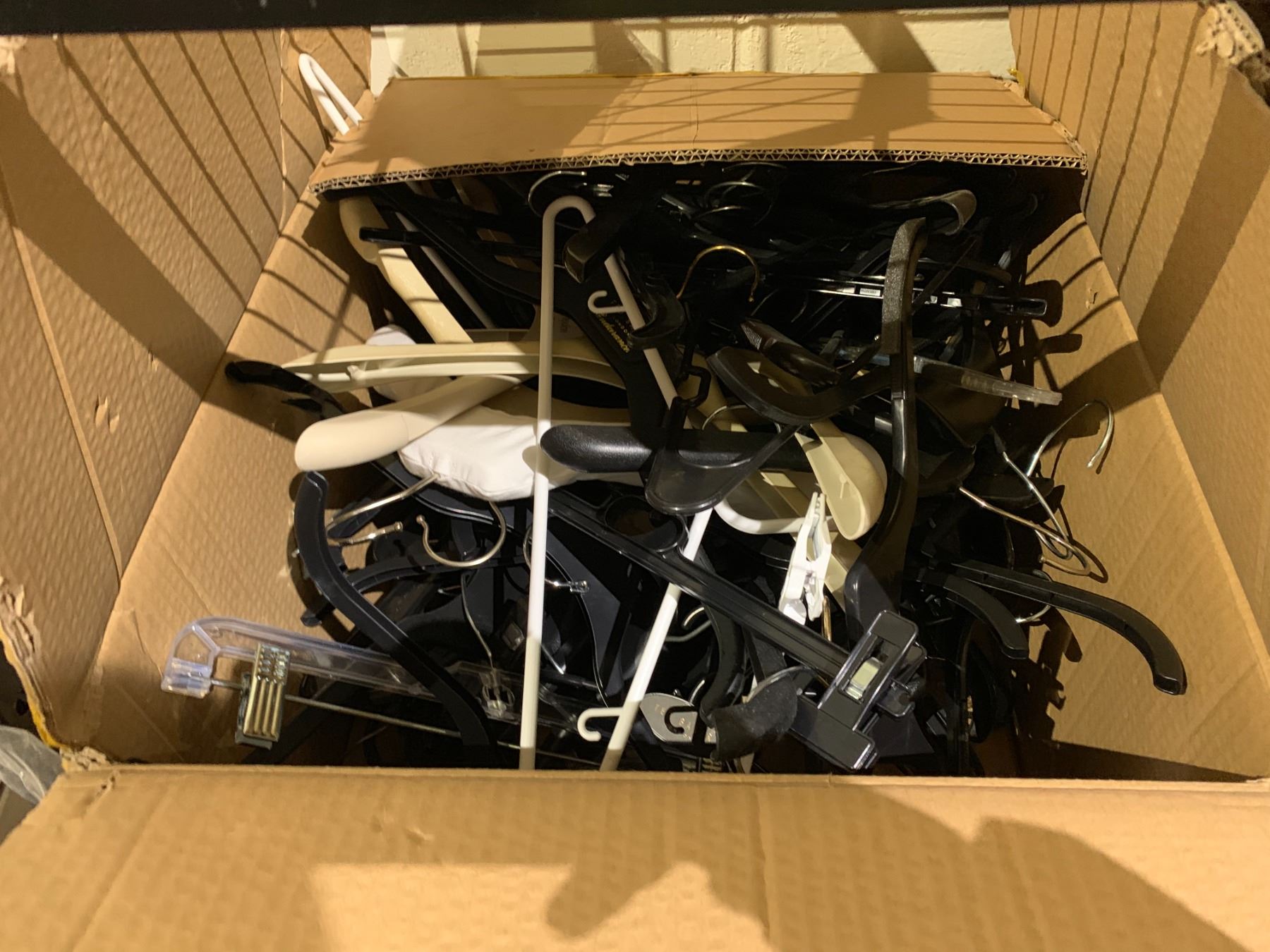 5 BOXES OF ASSORTED CLOTHES HANGERS