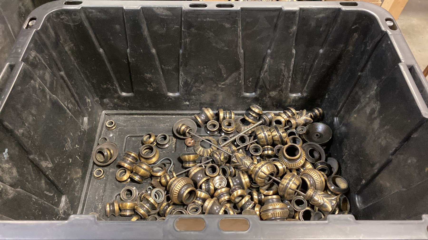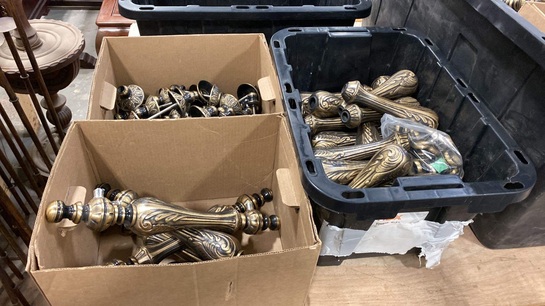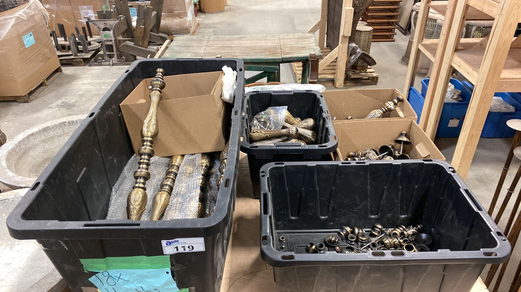 5 BOXES OF ASSORTED DECORATIVE FURNITURE HARDWARE, LEGS & HANDLES