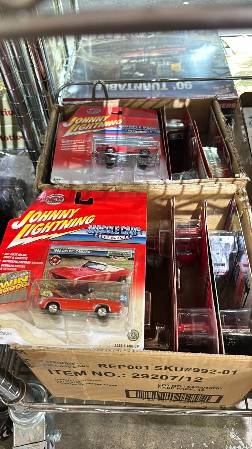 5 BOXES OF ASSORTED DIE CAST VEHICLES - HOT WHEELS & JOHNNY LIGHTING