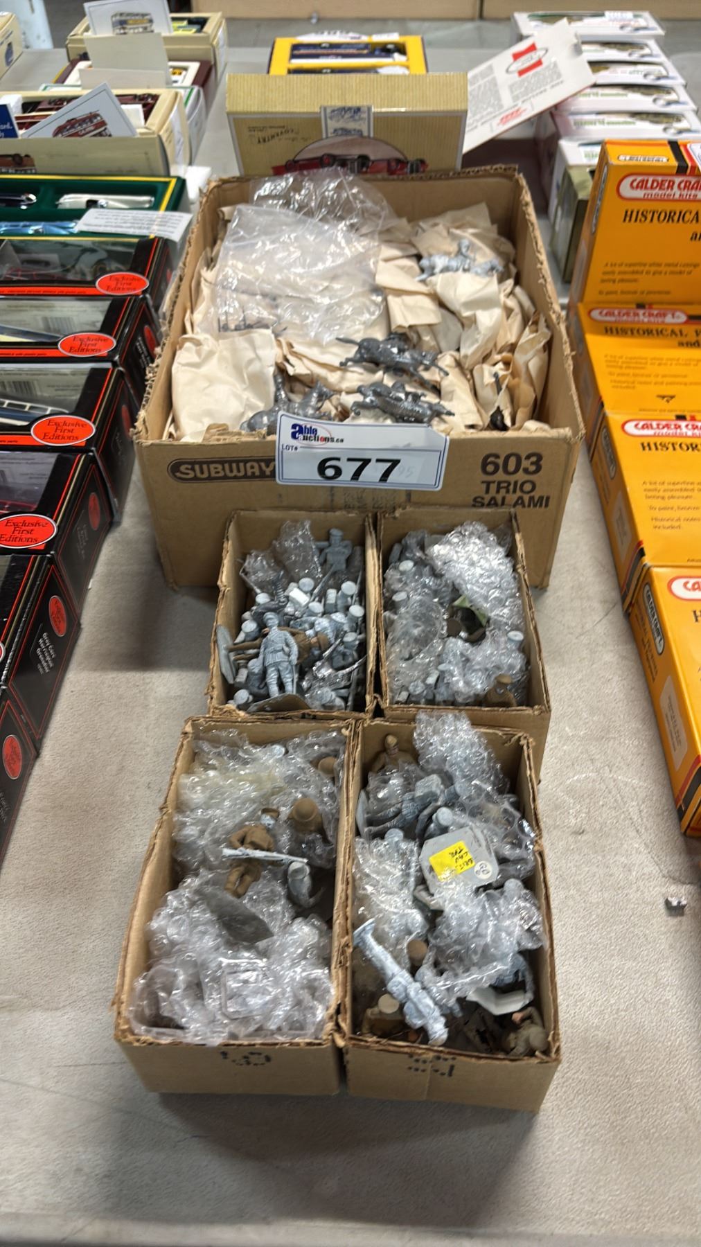 (5) BOXES OF ASSORTED METAL SOLDIER MINIATURES: MOST ARE UNPAINTED