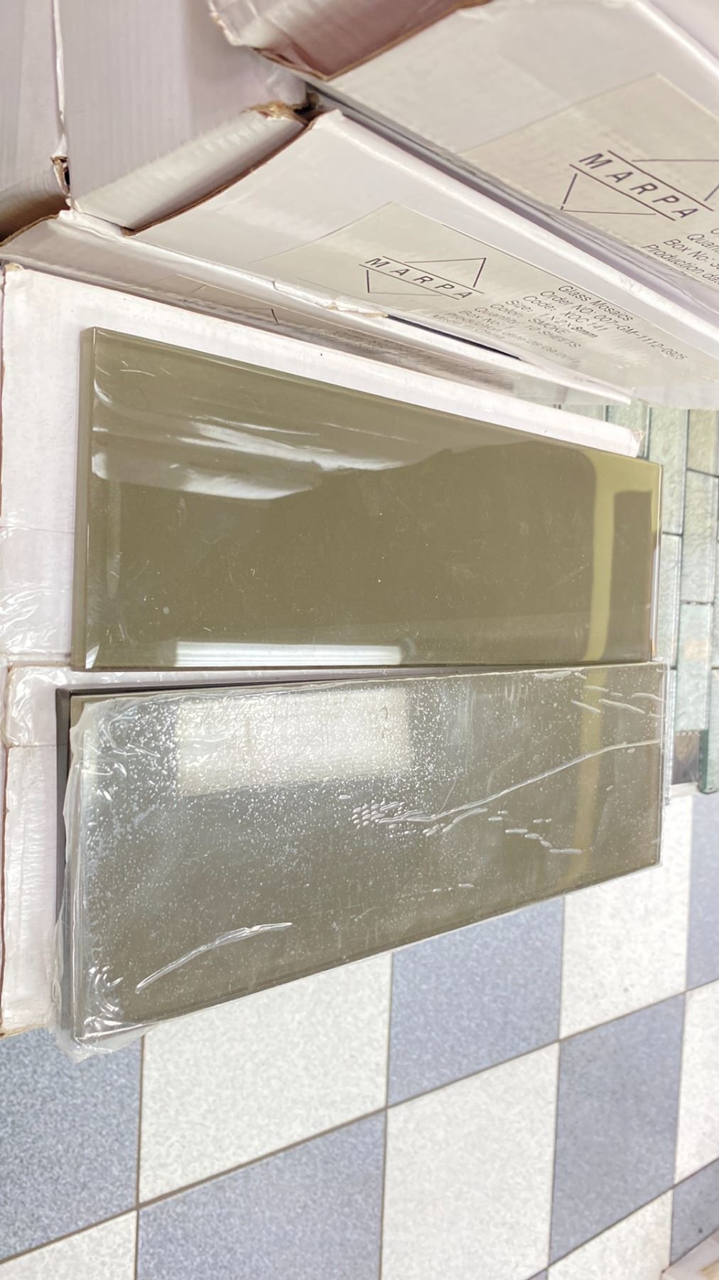5 BOXES OF MARPA GLASS TILE IN SMOKE 7.33SQ.FT. SHEETS PER BOX APPROX 36.65SQ.FT. TOTAL