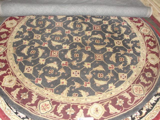 5' DIAMETER ROUND WOOL PILE AREA RUG - FLORAL PATTERN