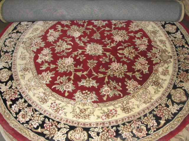 5' DIAMETER ROUND WOOL PILE AREA RUG - FLORAL PATTERN