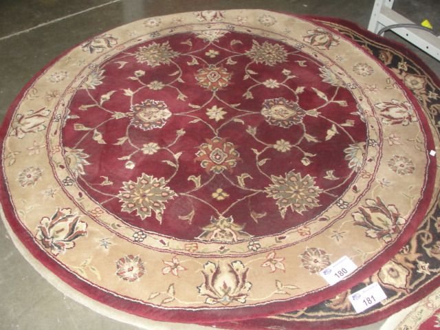 5' DIAMETER ROUND WOOL PILE AREA RUG - FLORAL PATTERN
