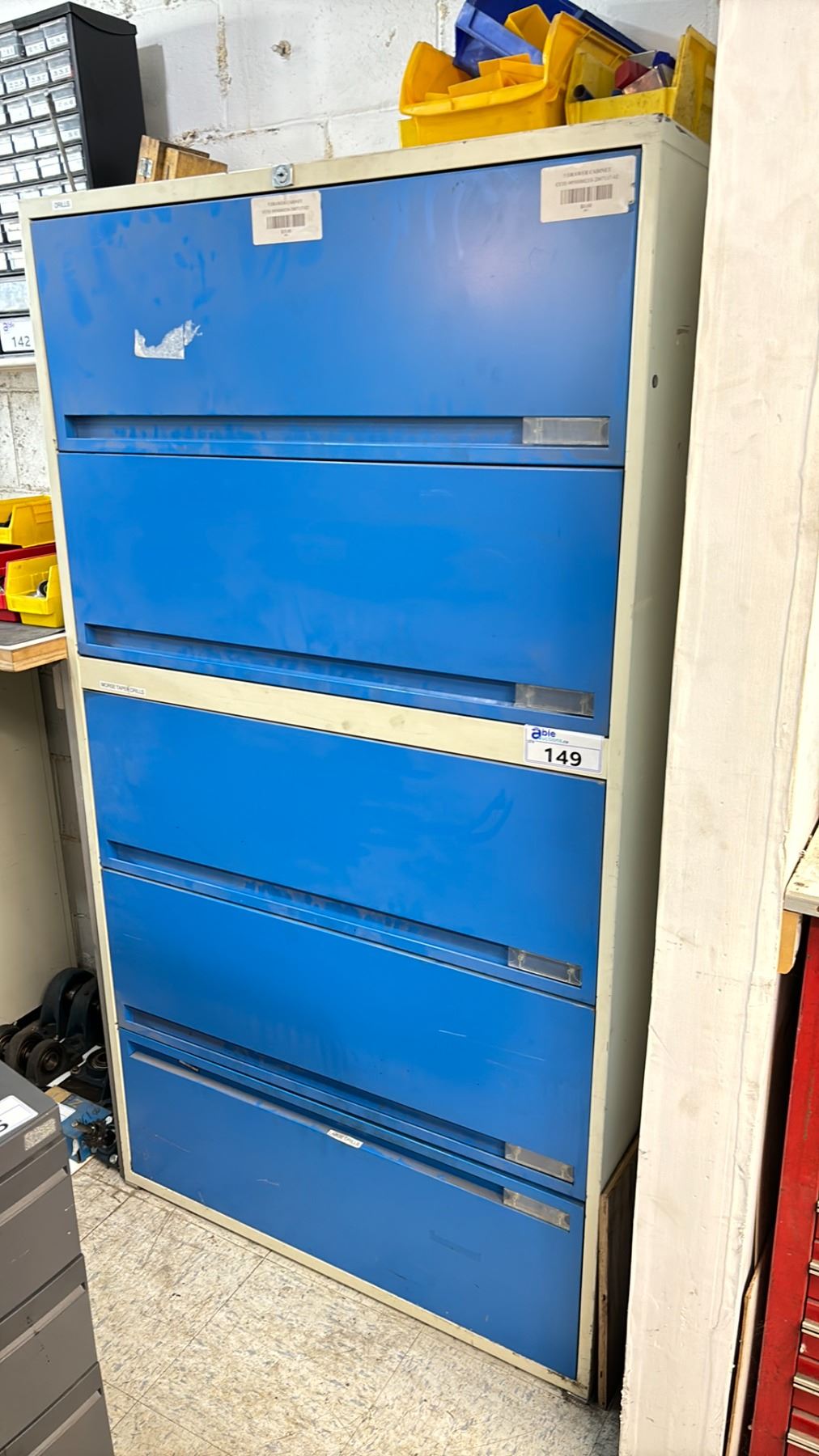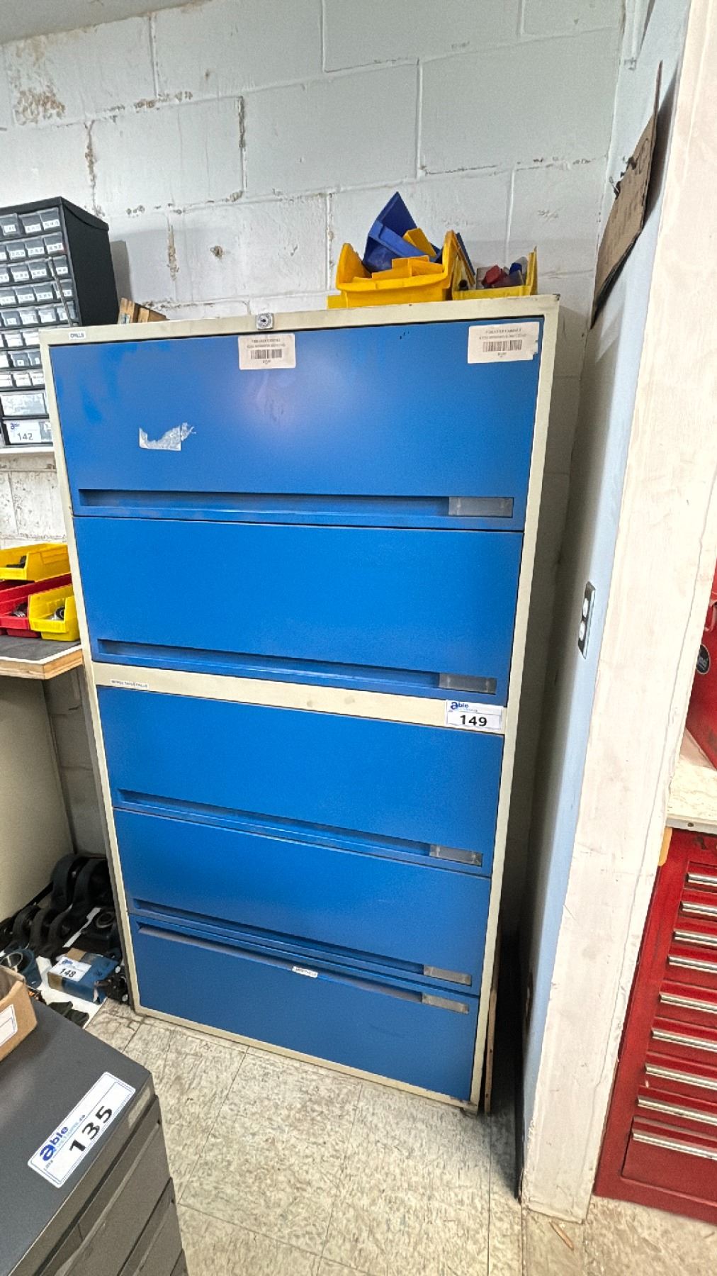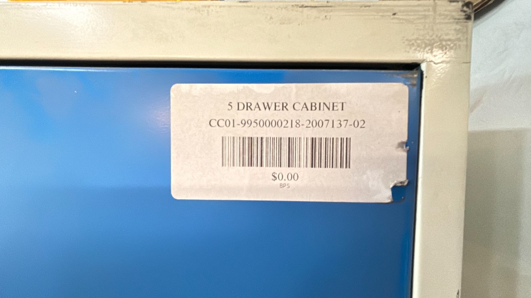5 DRAWER BLUE/BEIGE METAL STORAGE CABINET - APPROX. 3'W X 5.5'H X 1.5'D * CONTENTS NOT INCLUDED *