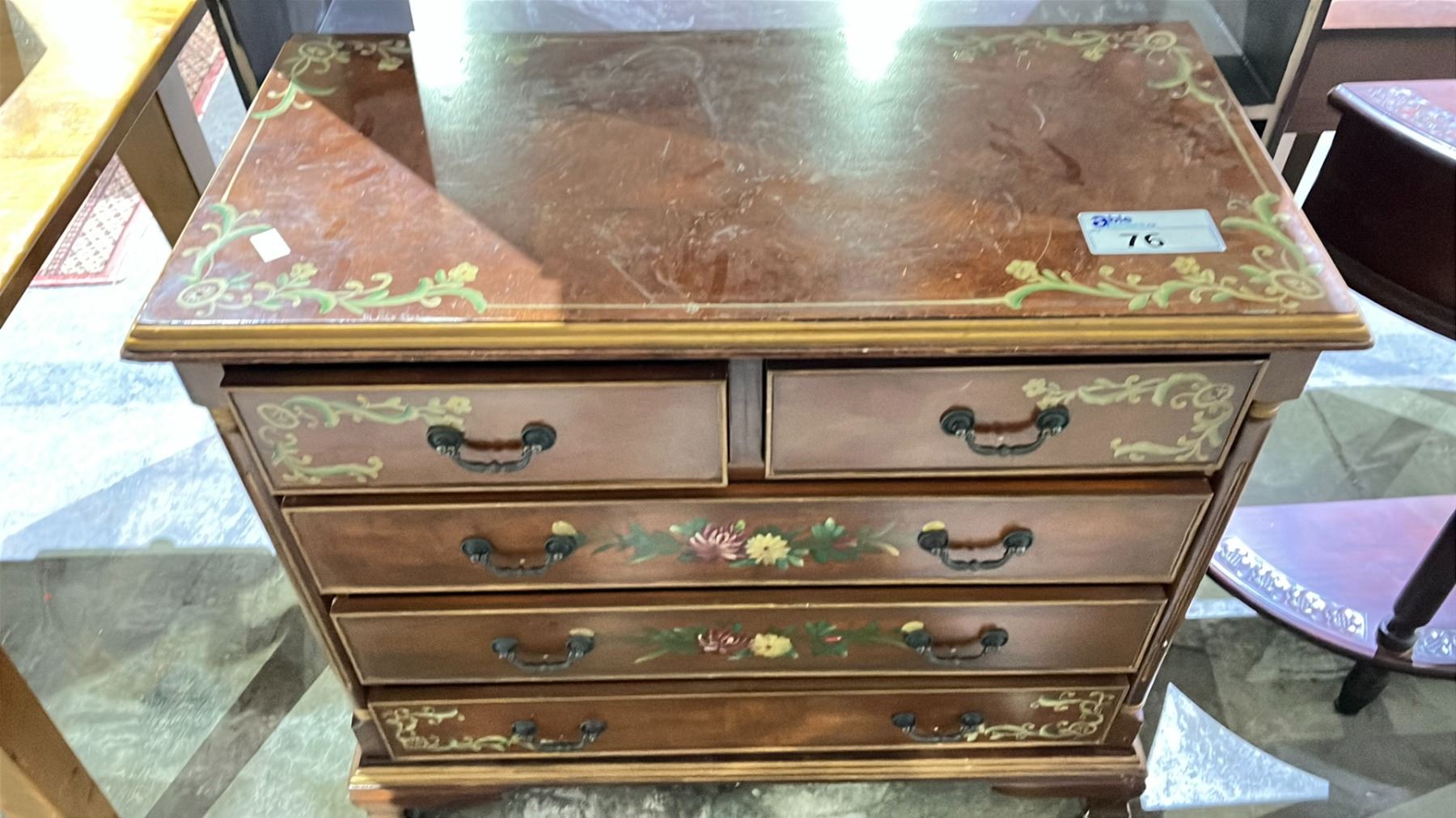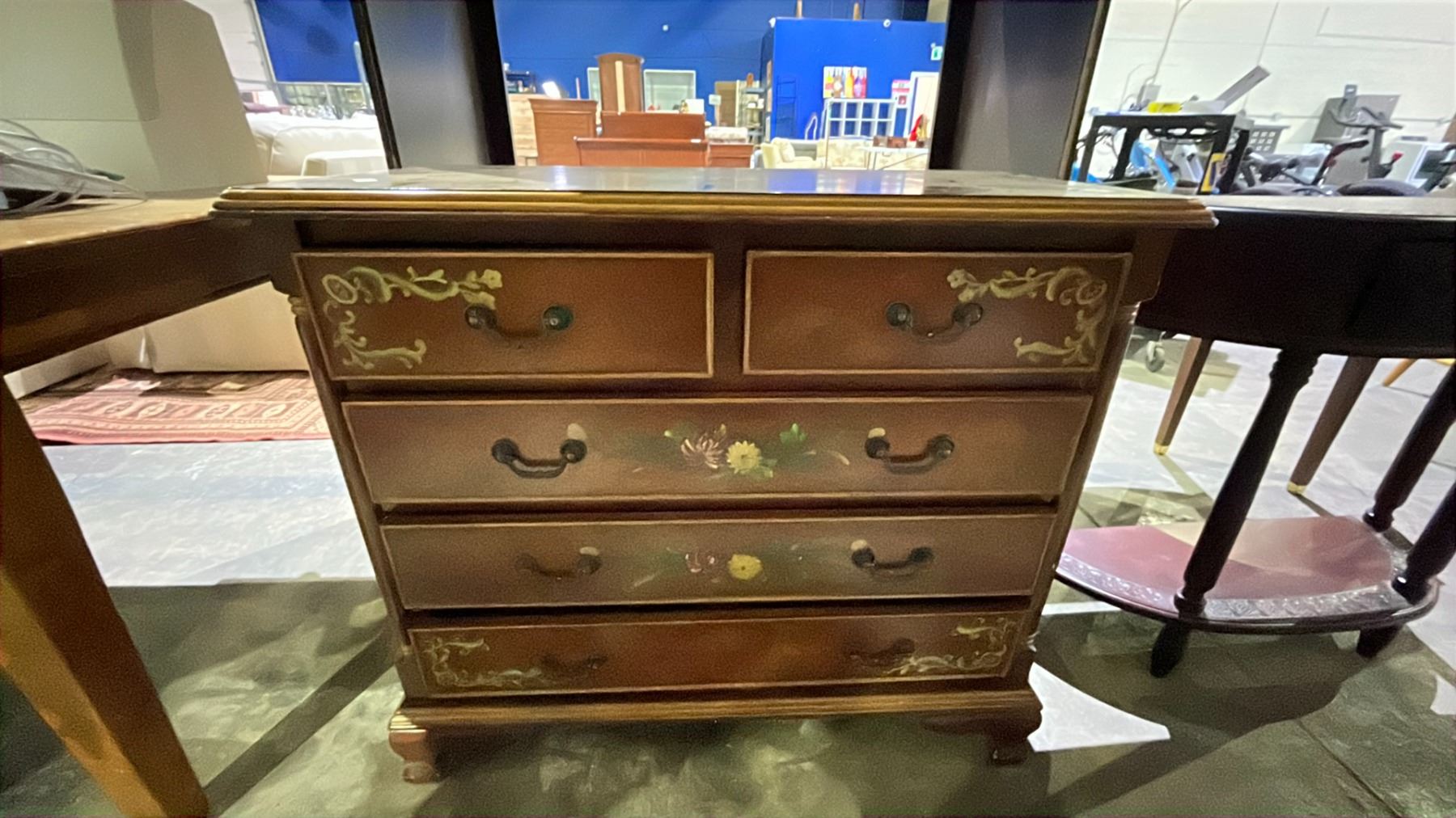 5 DRAWER FLORAL MOTIF WOOD DRESSER