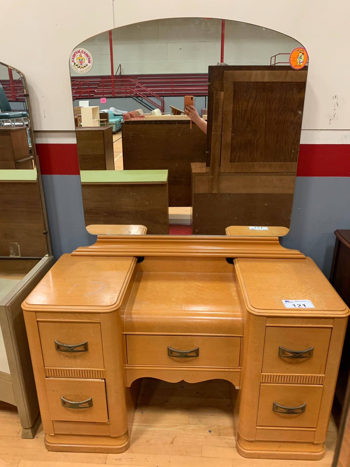 5 DRAWER WOOD VANITY WITH LARGE MIRROR APPROX 65"X46"X18"