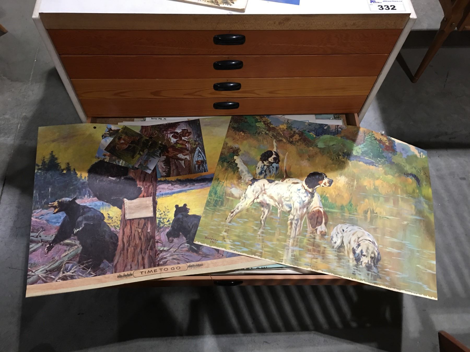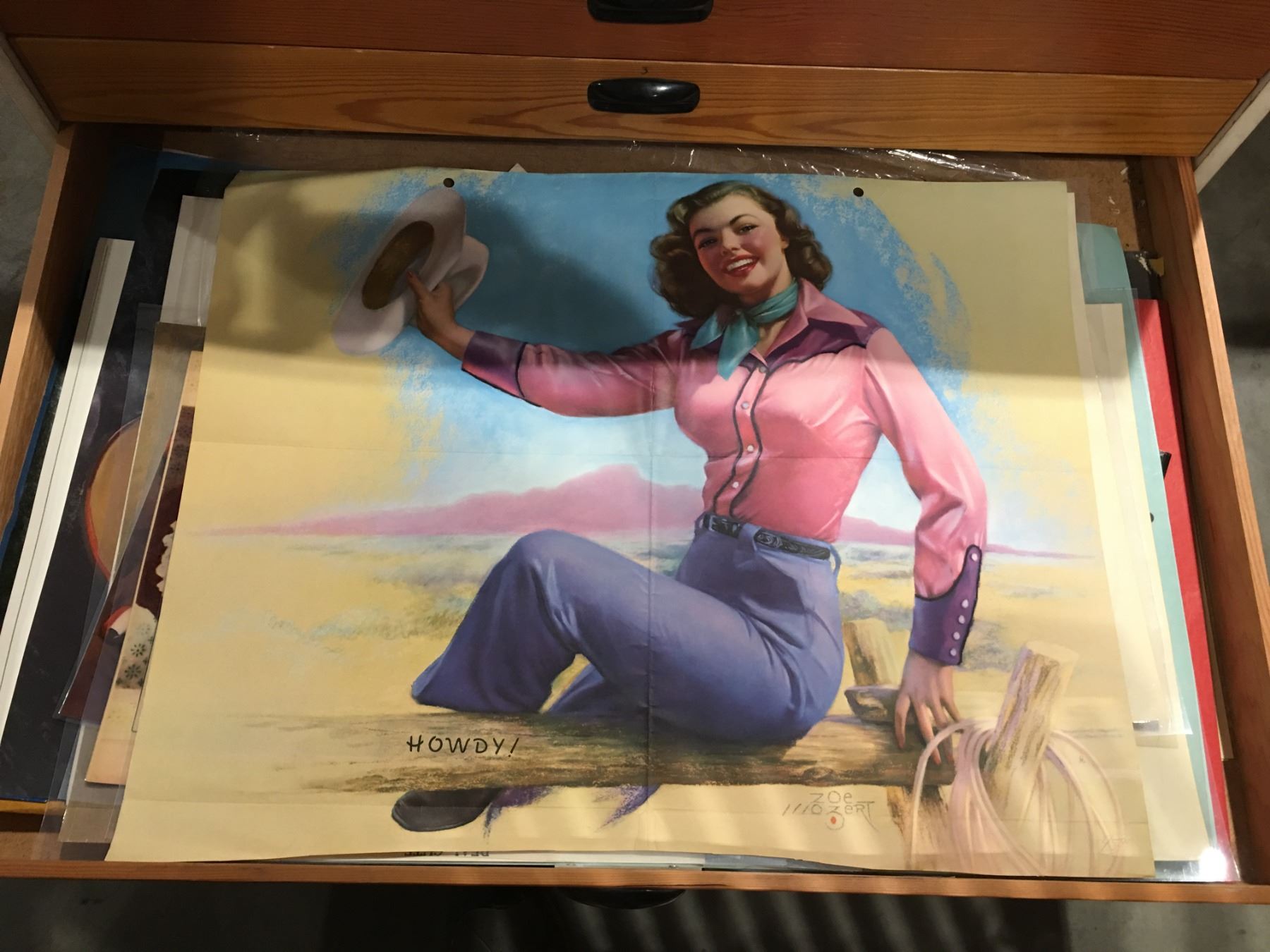 5 DRAWERS OF ASSTD VINTAGE PINUP POSTERS, CALENDARS & ASSTD ART PRINTS - 5 DRAWER CABINET INCLUDED