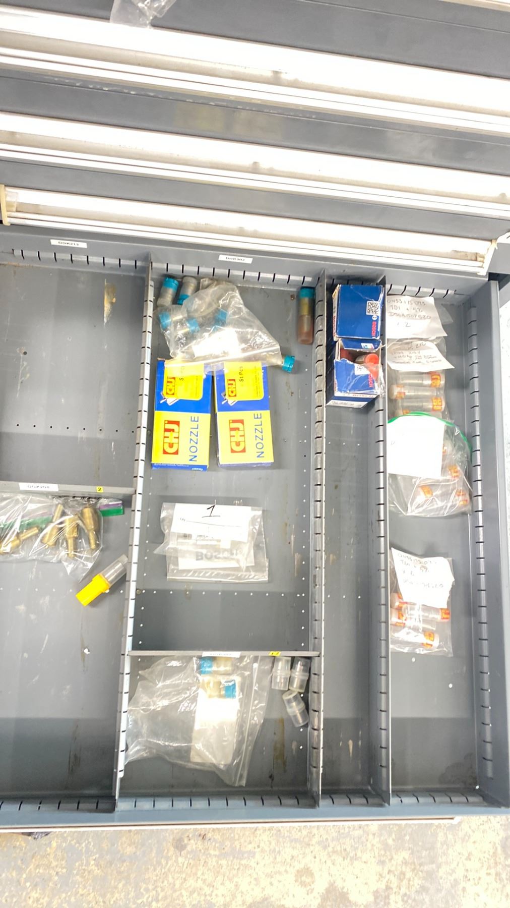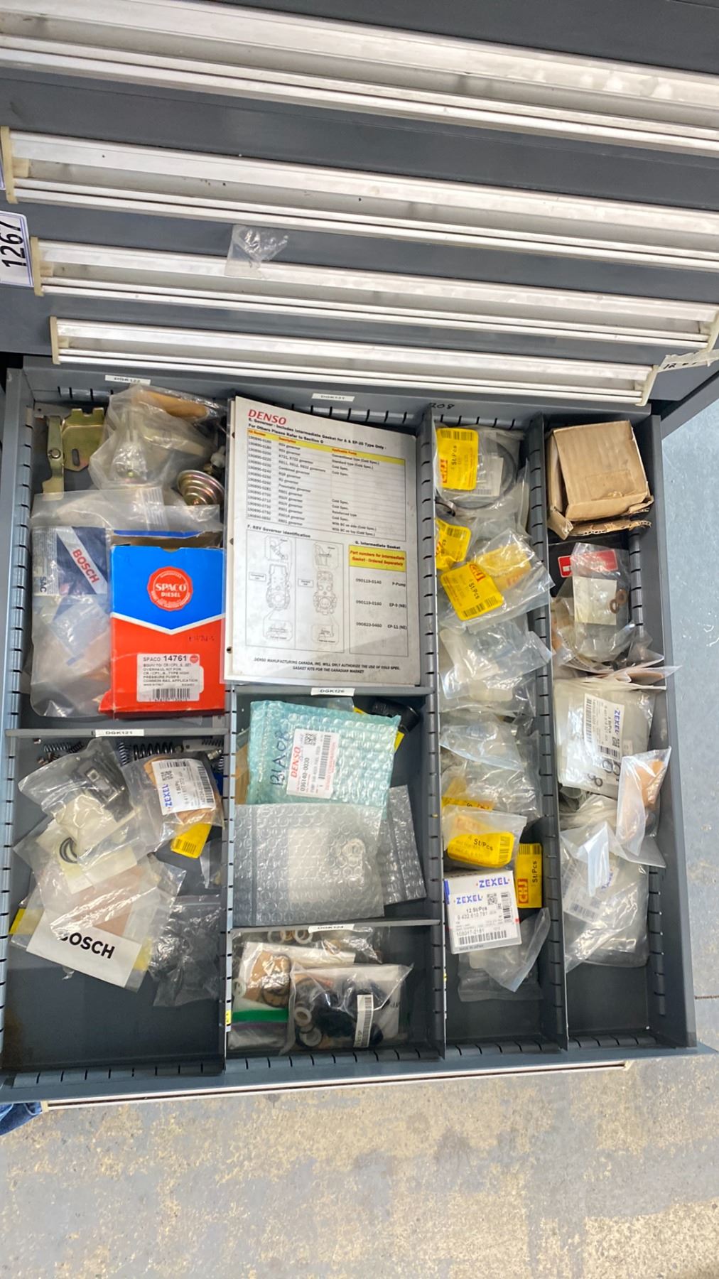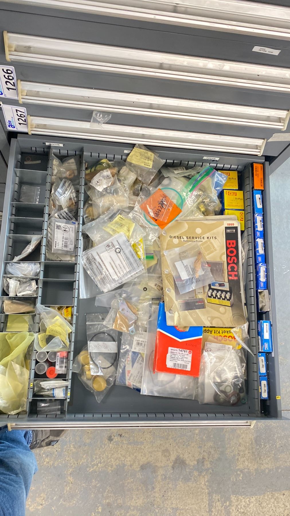 5 DRAWERS OF BOSCH REBUILD PARTS. CABINET NOT INCLUDED. BRING YOUR OWN BOXES