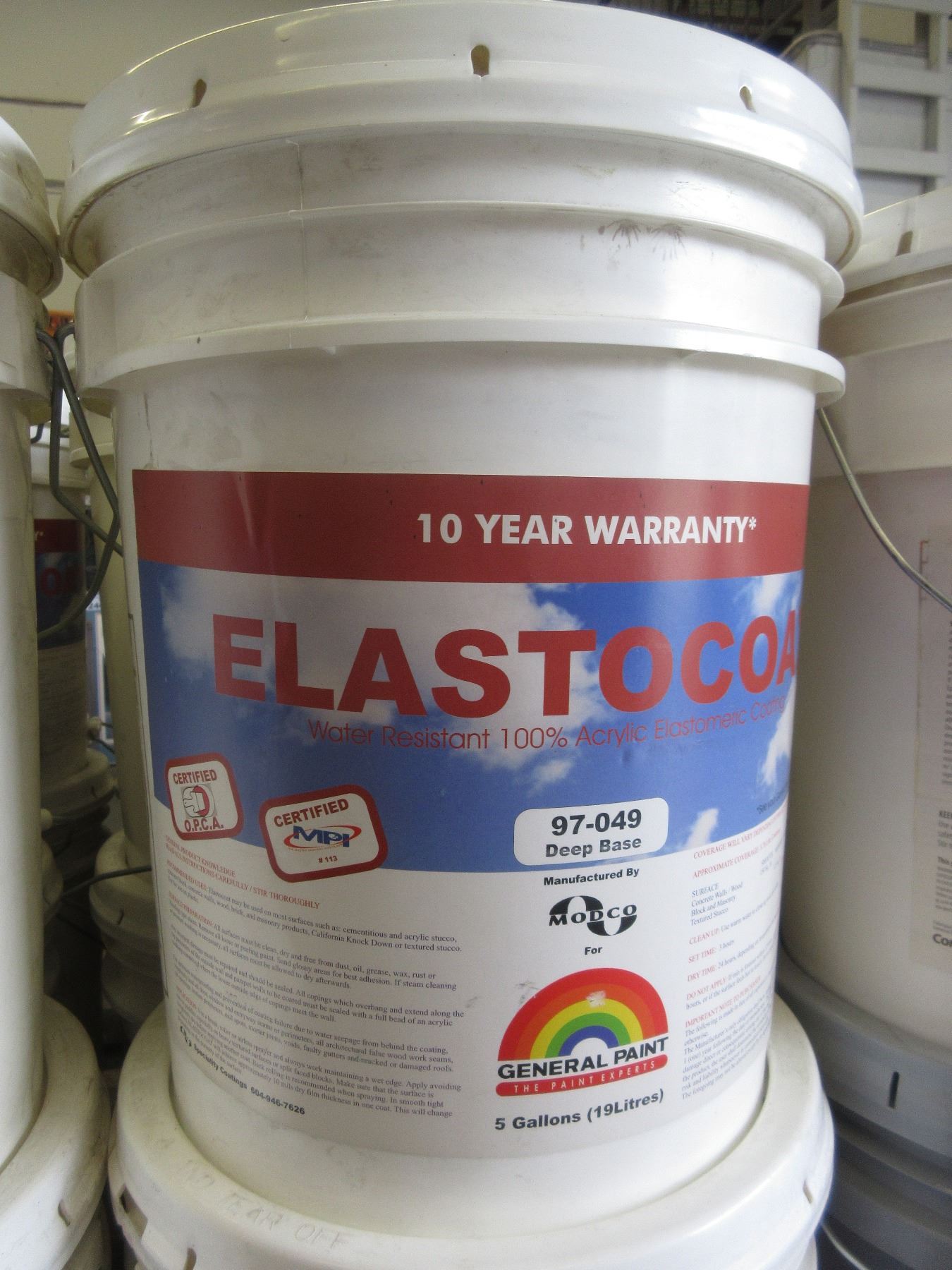 5 GALLON GENERAL PAINTS PLASTOCOAT WATER RESISTANT 100% ACRYLIC COATING
