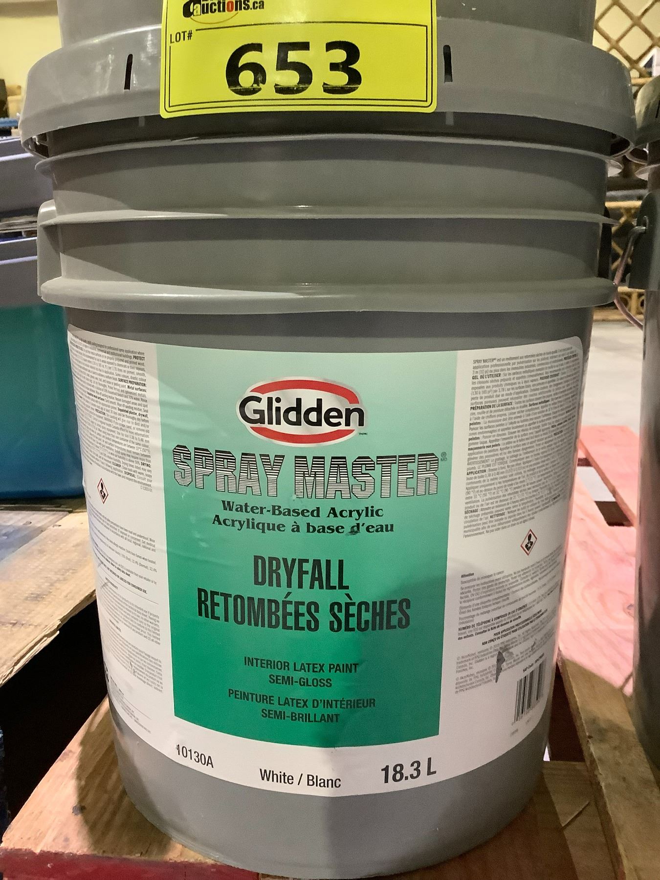 5 GALLON PAIL OF GLIDDEN SPRAY MASTER WATER BASED ACRYLIC DRYFALL INTERIOR LATEX PAINT SEMI GLOSS