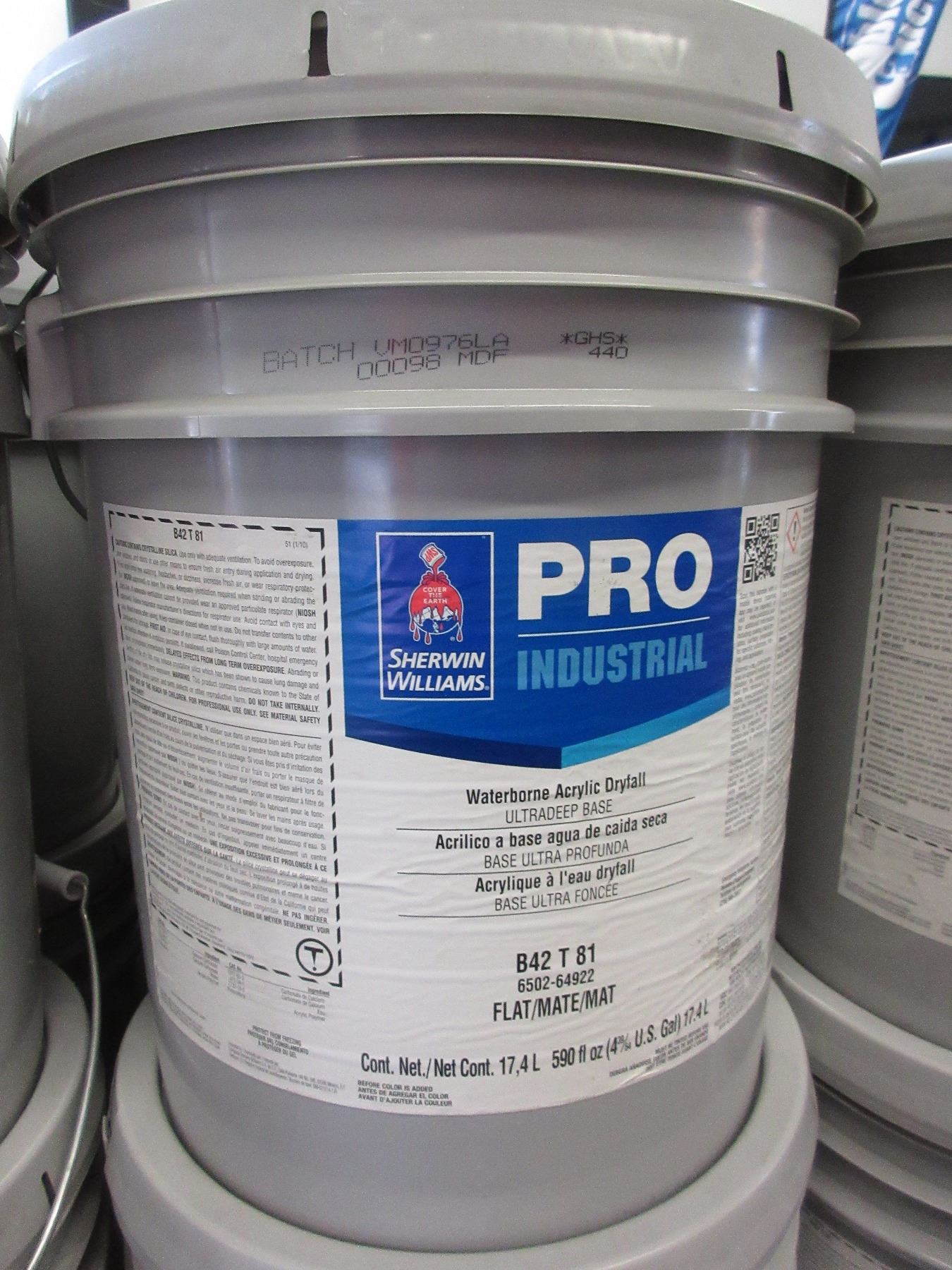 5 GALLON PALE OF SHERWIN WILLIAMS PRO INDUSTRIAL WATERBORNE ACRYLIC DRYFALL PAINT