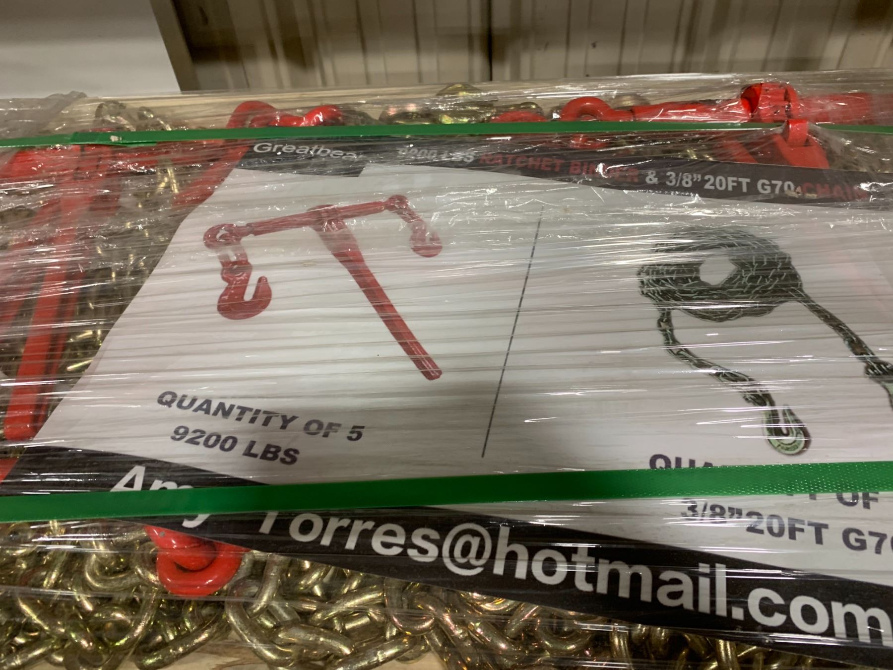 5 GREATBEAR 9200 LBS RATCHET BINDER WITH 10 PCS 3/8" X 20' G70 CHAINS *IN CRATE*