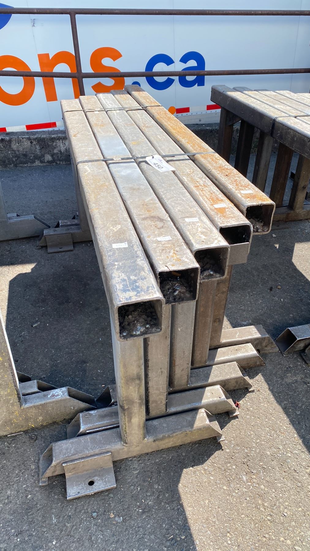 5- HEAVY DUTY CUSTOM MADE INDUSTRIAL SAW HORSES APPROX 31"H ASSORTED LENGTHS