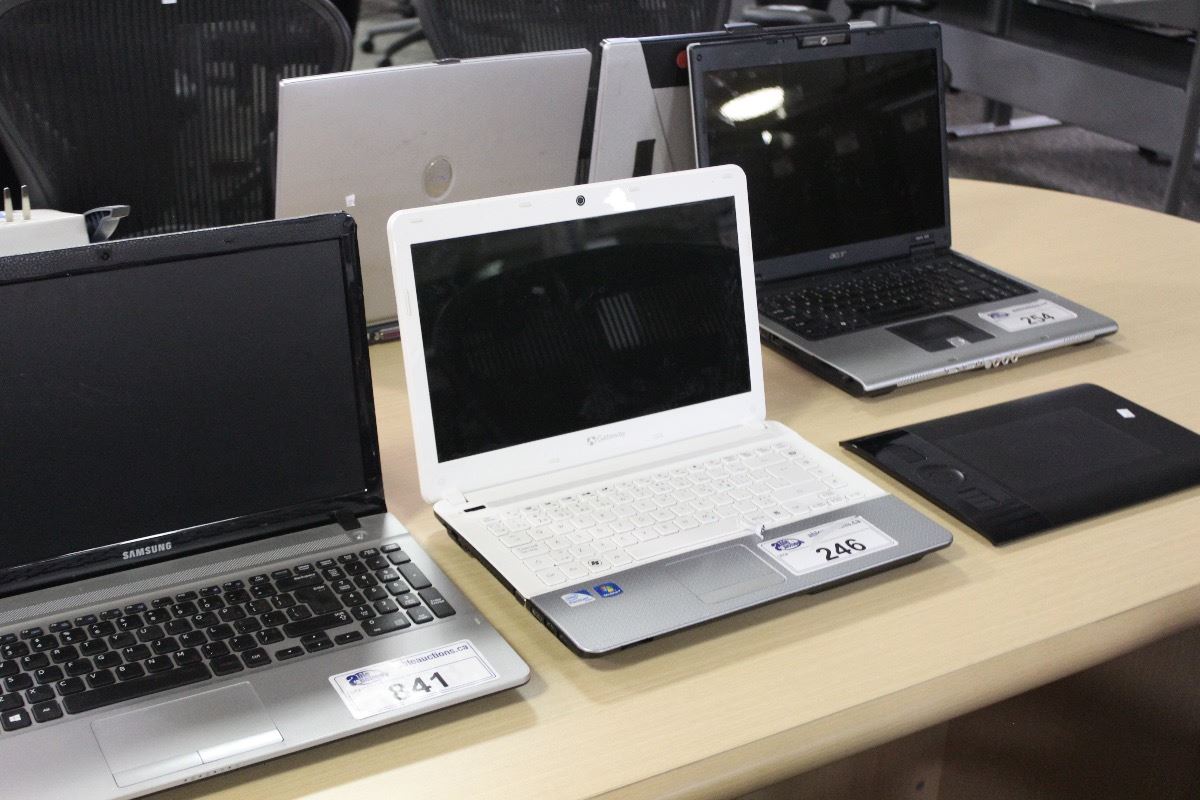 5 LAPTOP COMPUTERS AND WACOM USB DRAWING TABLET, NO HARD DRIVE, NO POWER SUPPLY