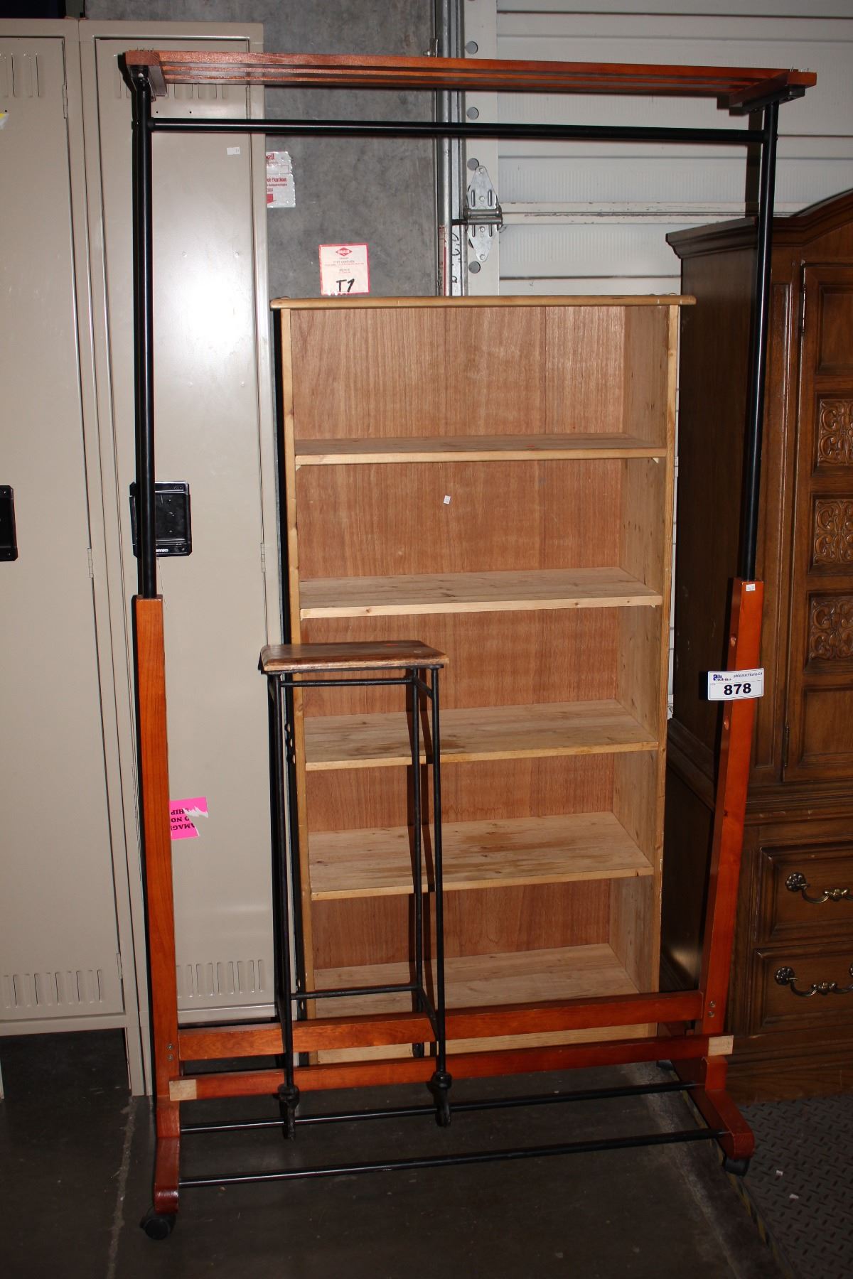 5-LEVEL PINE BOOKSHELF, GARMENT RACK, AND SMALL SIDE TABLE