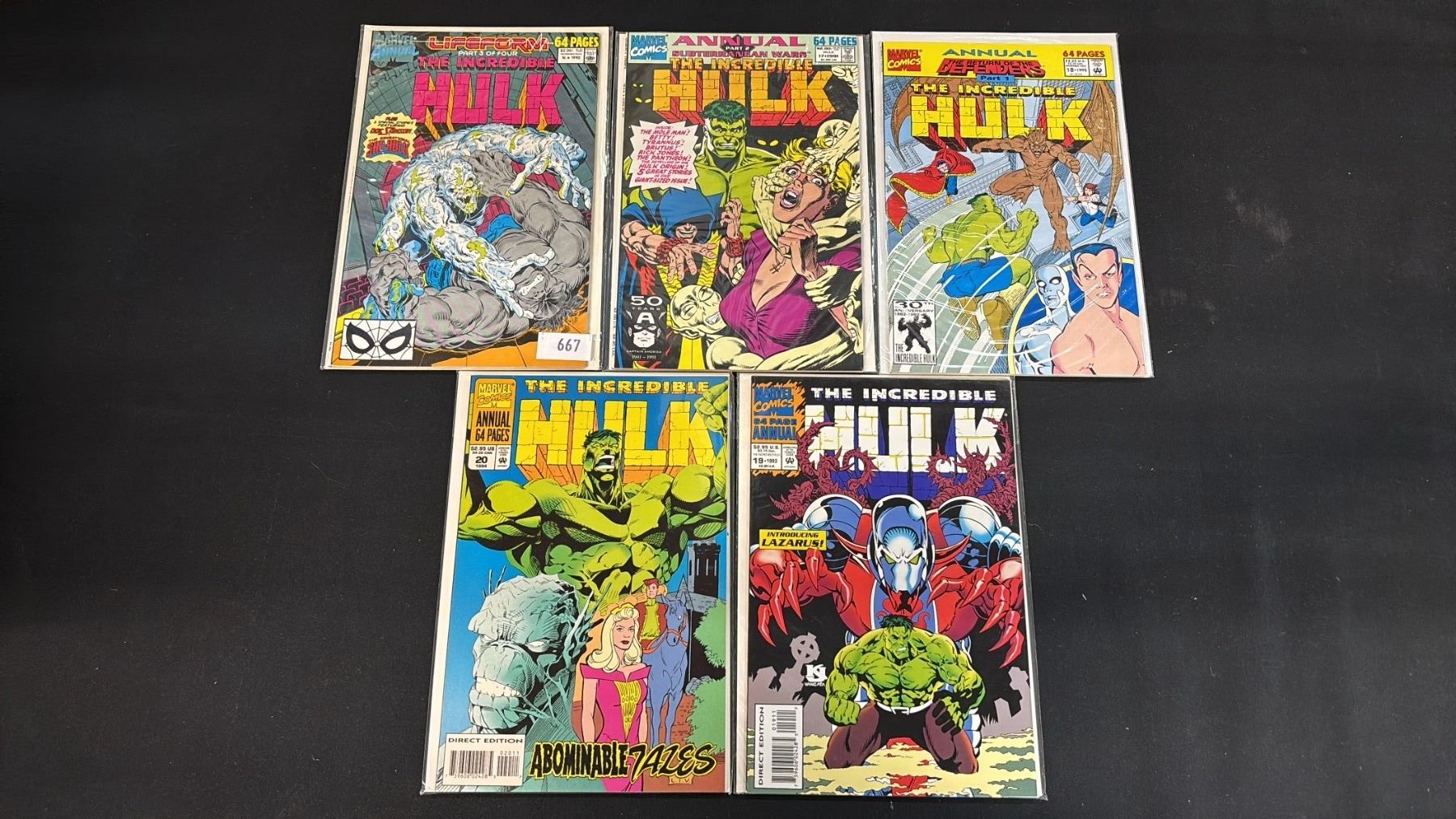 (5) MARVEL ANNUAL THE INCREDIBLE HULK COMIC BOOKS