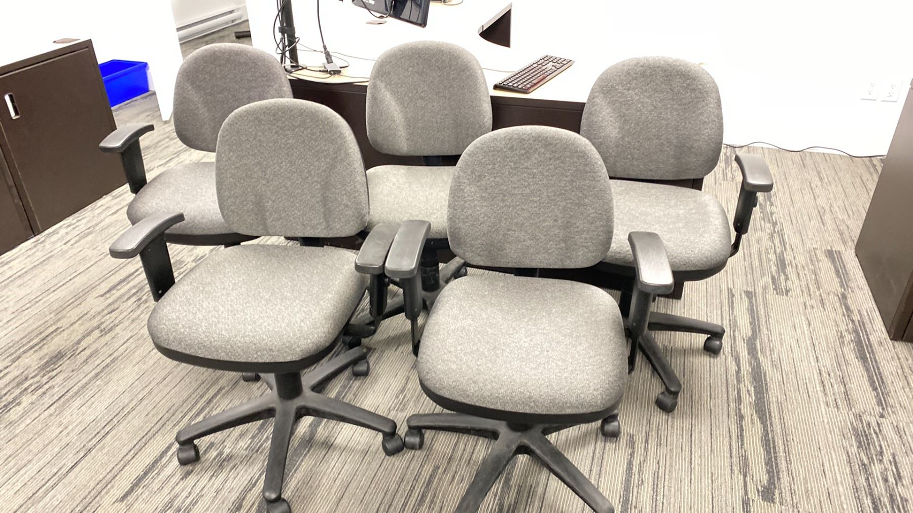 5 MATCHING GREY ROLLING OFFICE CHAIRS