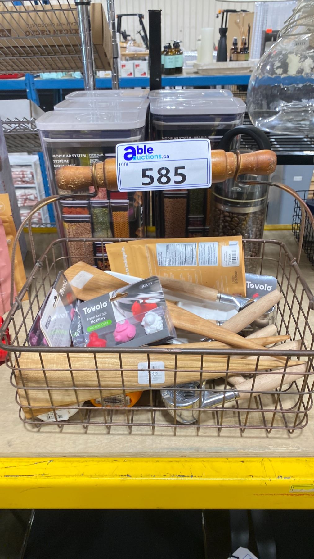 5 OXO VACUUM SEAL CANISTERS, COFFEE CANISTER AND SHOPPING BASKET FULL OF ASSORTED COOKING ACCESSORIES