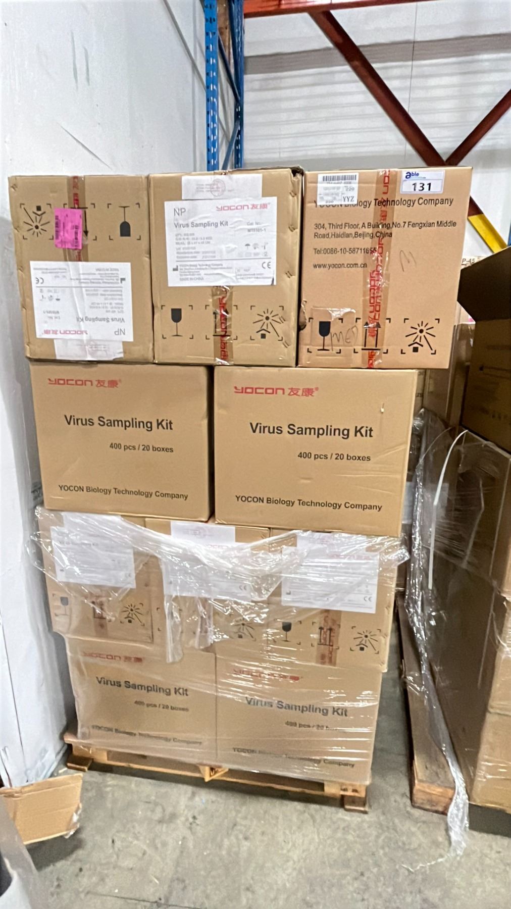 5 PALLETS OF VIRUS SAMPLING KITS - APPROX. 20 BOXES PER PALLET/ 400 PCS. PER BOX