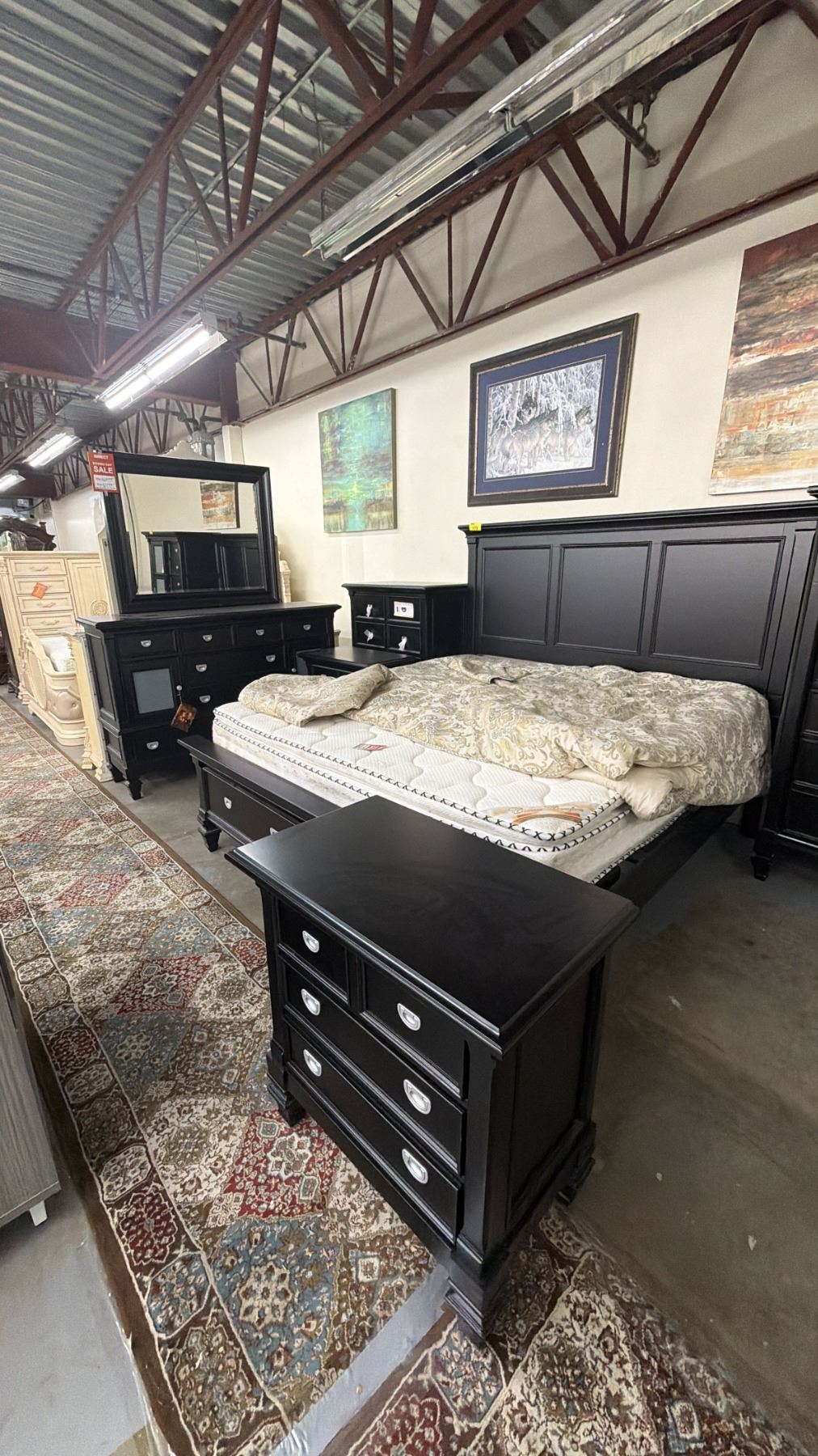 5-PC BEDROOM SUITE INCLUDING; KING SIZE BED WITH CLASSIC COMFORT MATTRESS, DRESSER WITH MIRROR, HIGHBOY DRESSER & (2) NIGHT STANDS