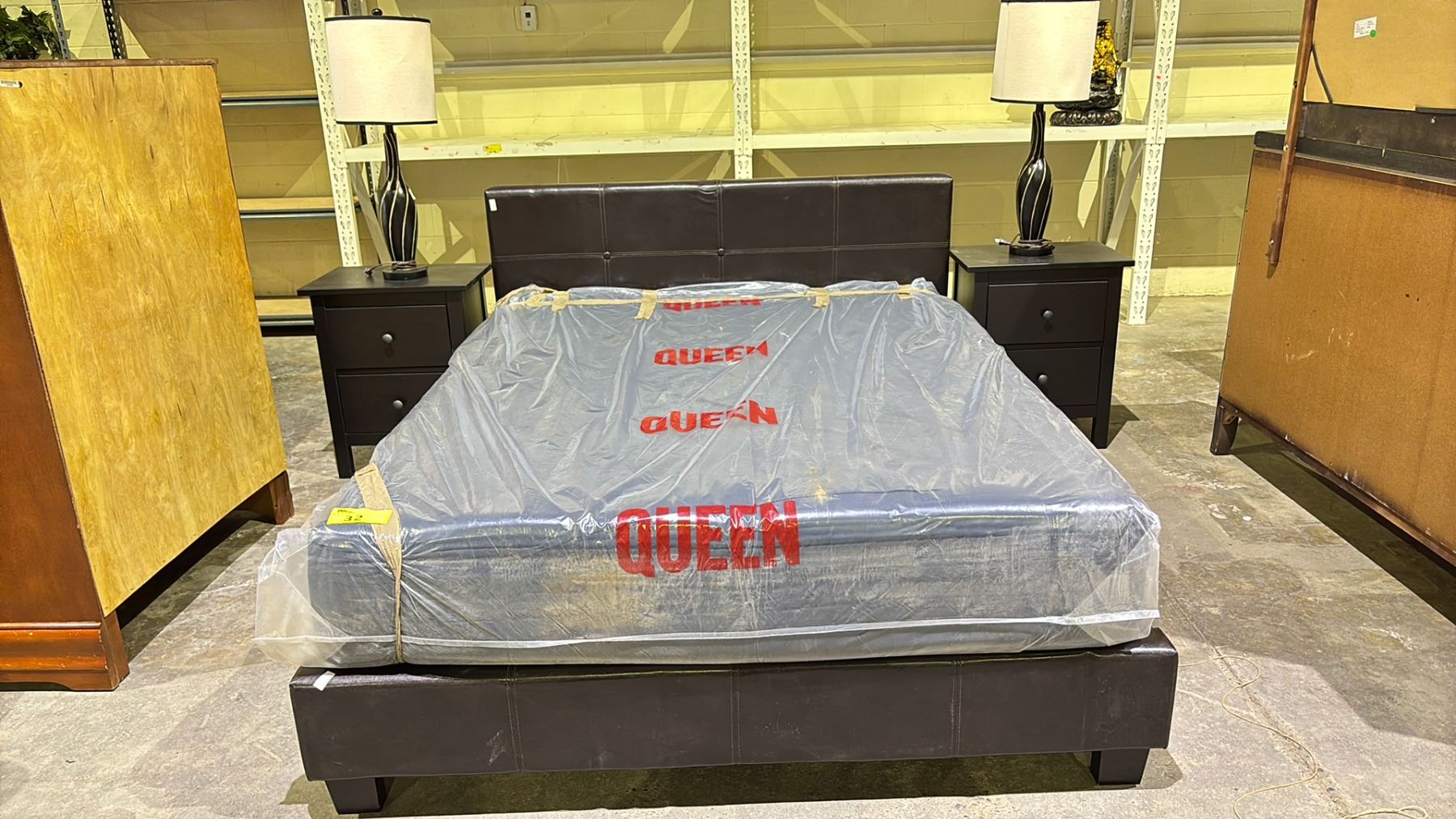 5-PC BEDROOM SUITE INCLUDING; QUEEN SIZE BED WITH MATTRESS, 2 NIGHT STAND & 2 TABLE LAMPS WITH SHADES