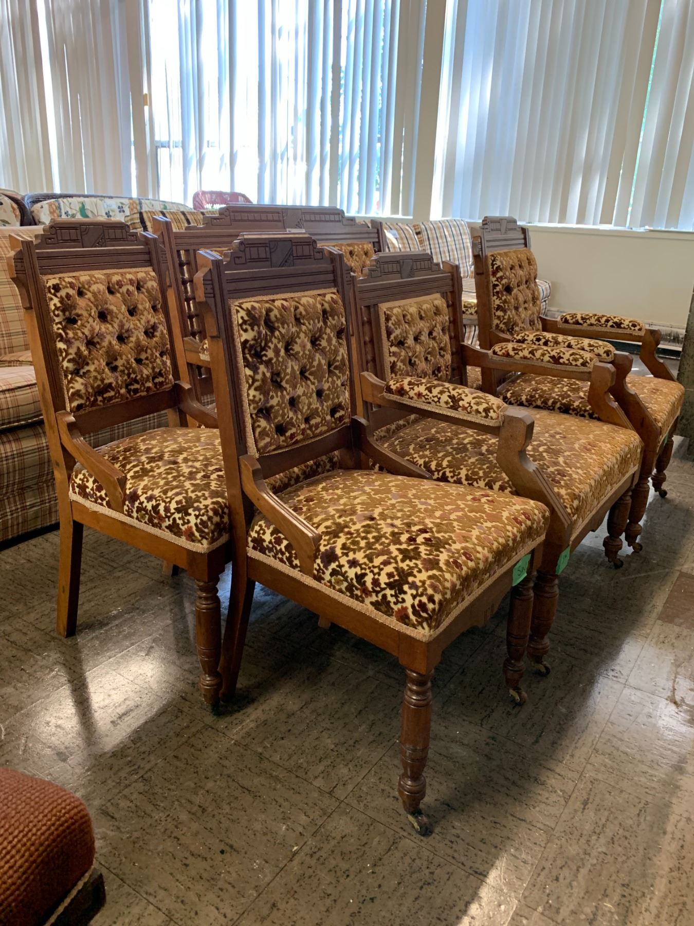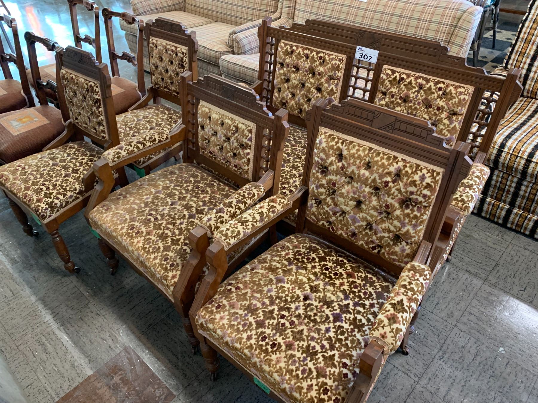 5-PC VINTAGE CHAIR SETS INCLUDING; 4 DINING CHAIRS & LOVE SEAT