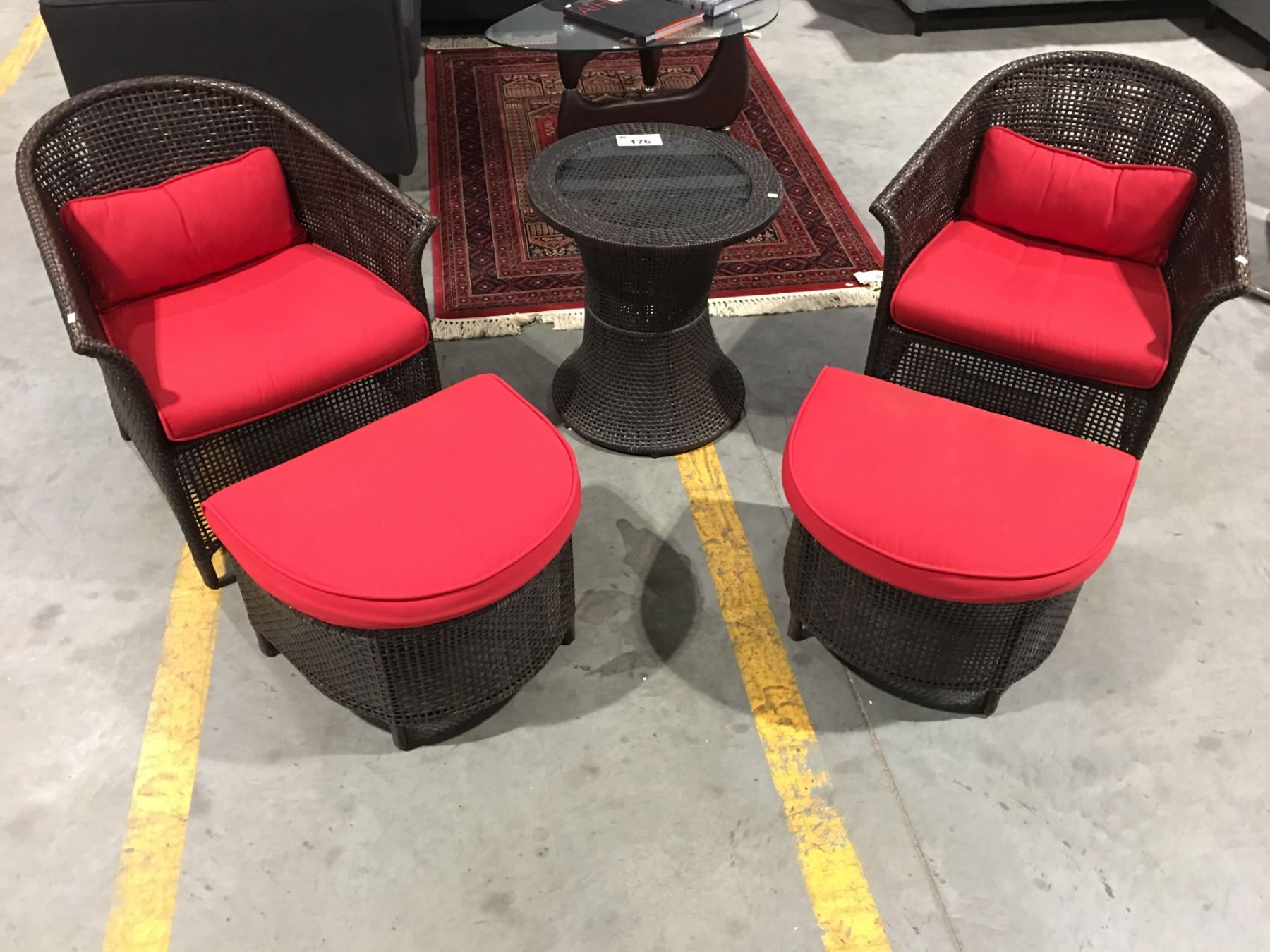 5 PCE PATIO LOUNGE CHAIR SET - 2 CHAIRS, 2 FOOT STOOLS & ROUND SIDE TABLE
