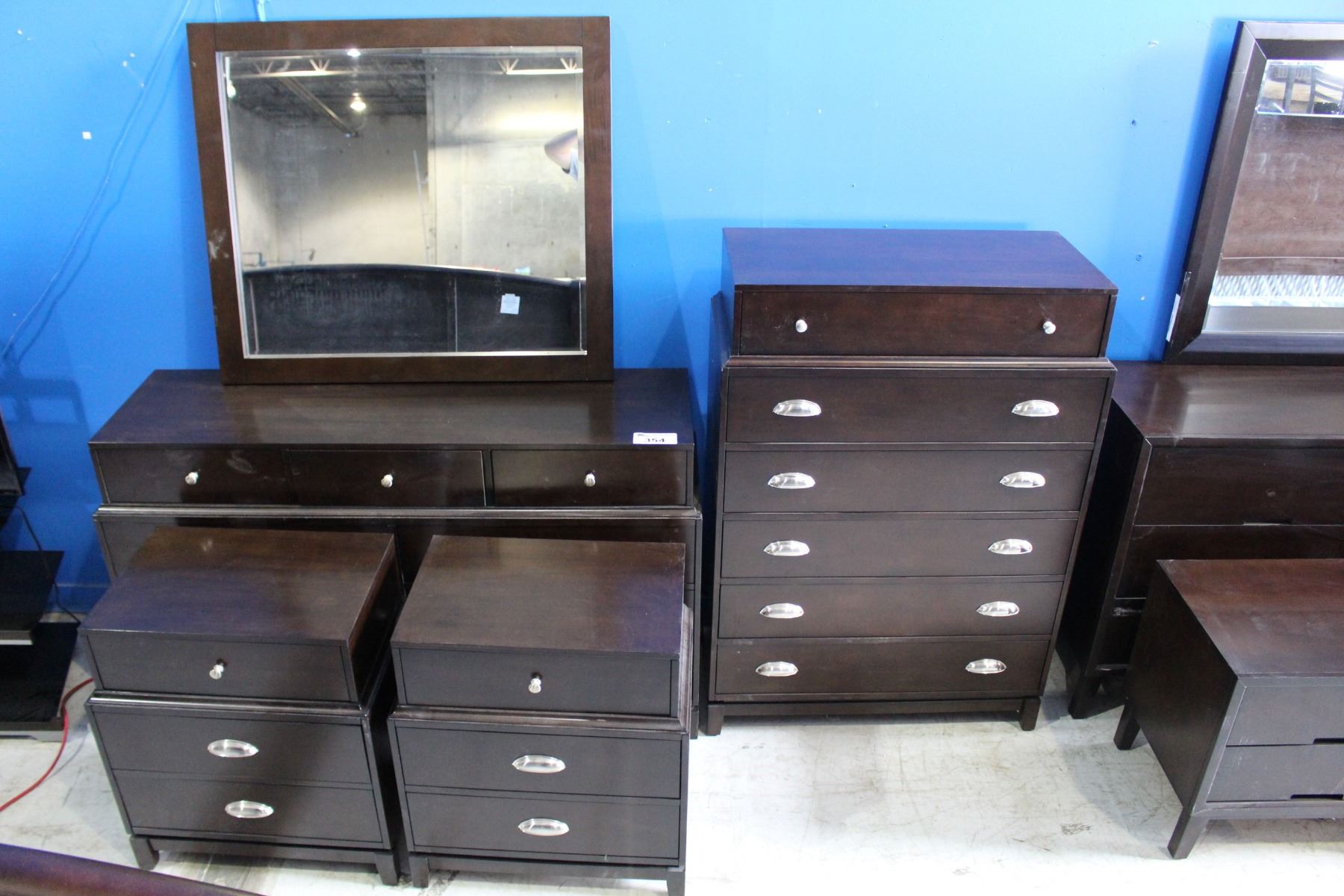 5 PIECE BEDROOM SUITE INCLUDING DRESSER WITH MIRROR, HIGHBOY, AND 2 NIGHTSTANDS