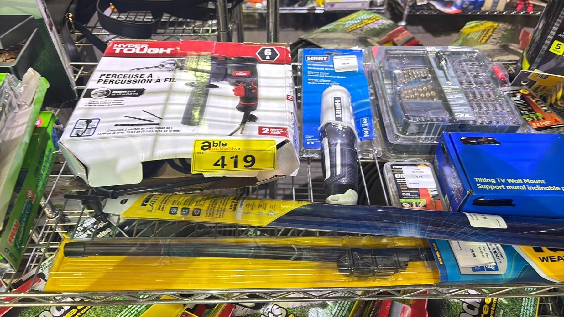 5 PIECE CAR KIT, CORDED HAMMER DRILL, FRESH BREEZE CABIN AIR FILTER, SENTRY SAFE DELUXE CASH BOX, TILTING TV WALL MOUNT, WINDSHIELD WIPERS, 44 PC DRILL/DRIVING SETS & MORE