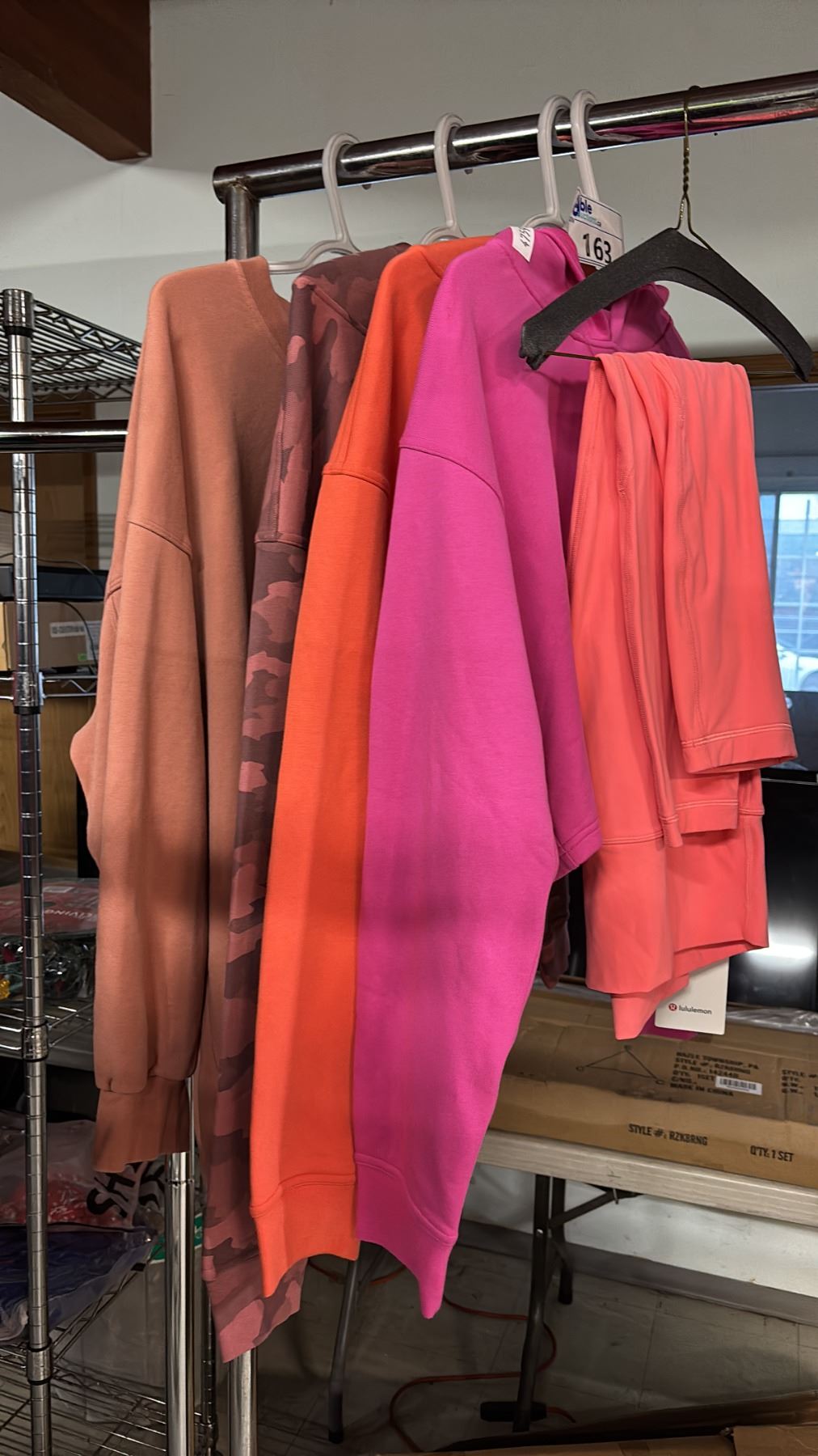 (5) PIECES OF ASSORTED LULU LEMON LEGGINGS & SWEATERS