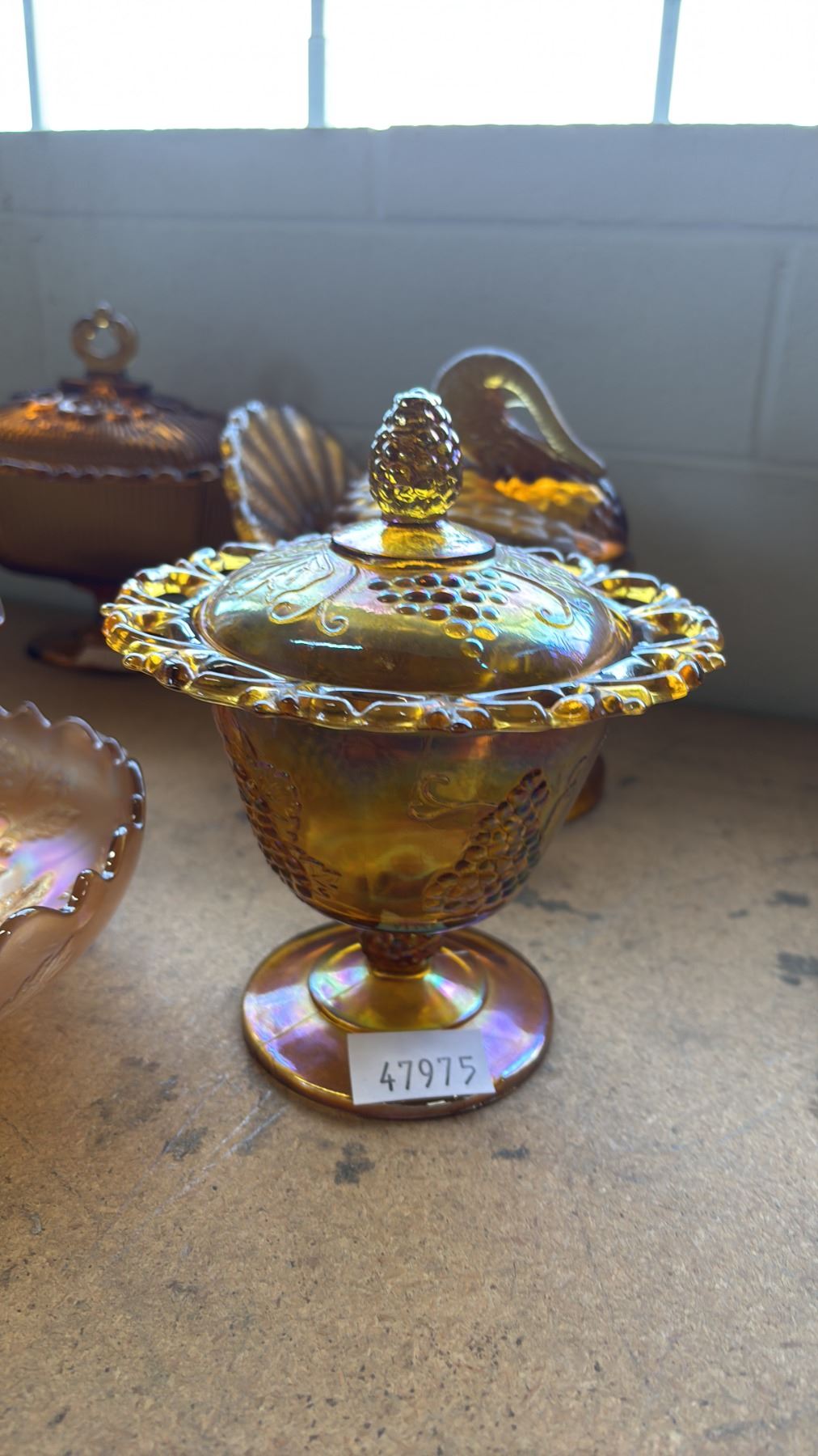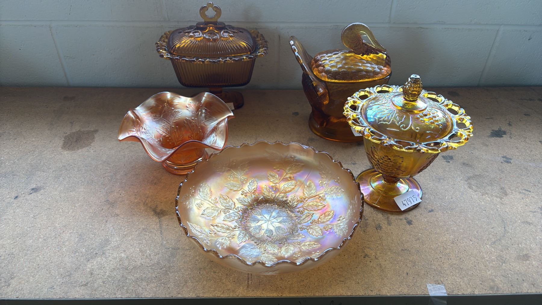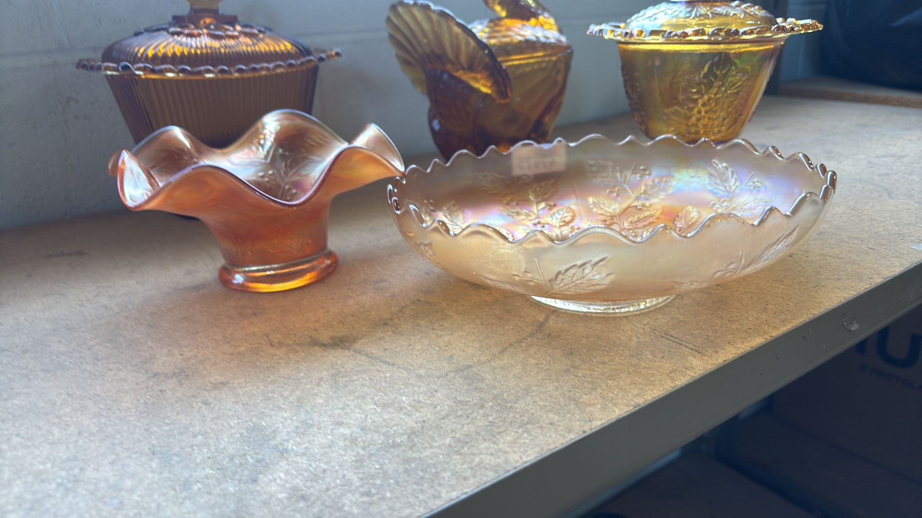 5 PIECES OF FENTON & OTHER AMBER GLASSWARE