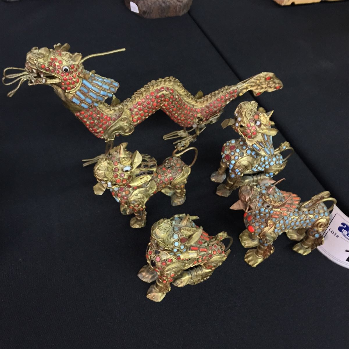 5 PIECES OF ORNATE BRONZE ASIAN MINIATURE STATUES
