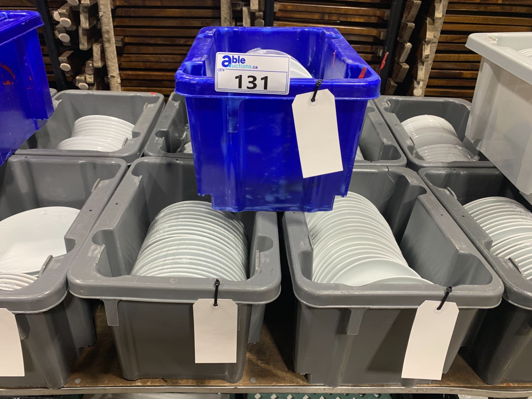 5 PLASTIC CRATES OF 8" WHITE COMMERCIAL RESTAURANT SIDE PLATES *PLASTIC CRATES INCLUDED* ( APPROX. 20 PLATES PER CRATE )