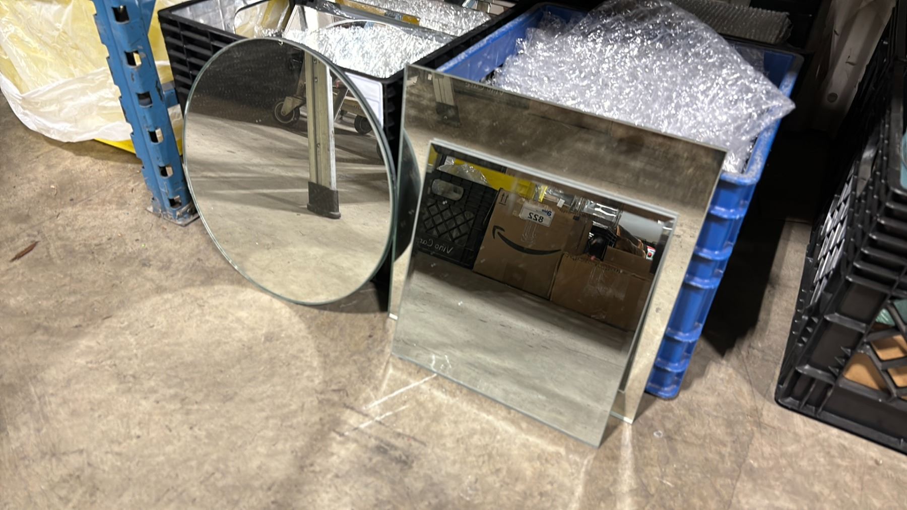 5 PLASTIC CRATES OF ASSORTED COMMERCIAL MIRROR DECORATIVE TABLE CENTER PLATES *CRATES INCLUDED*