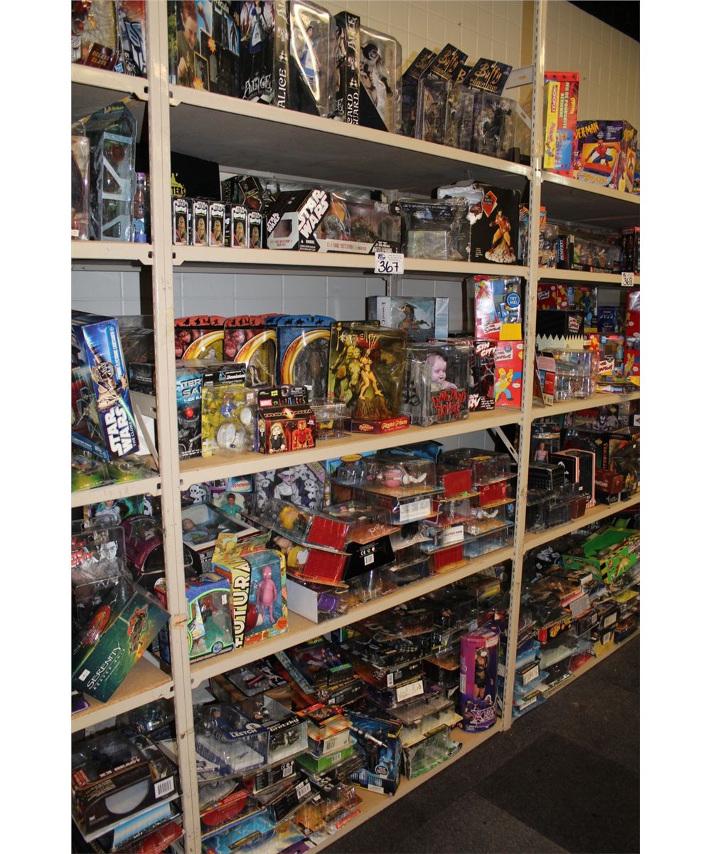 5 SHELVES OF ASSORTED NEW IN BOX TOYS, FIGURES ETC. HUNDREDS OF DOLLARS IN RETAIL VALUE IN EACH LOT!