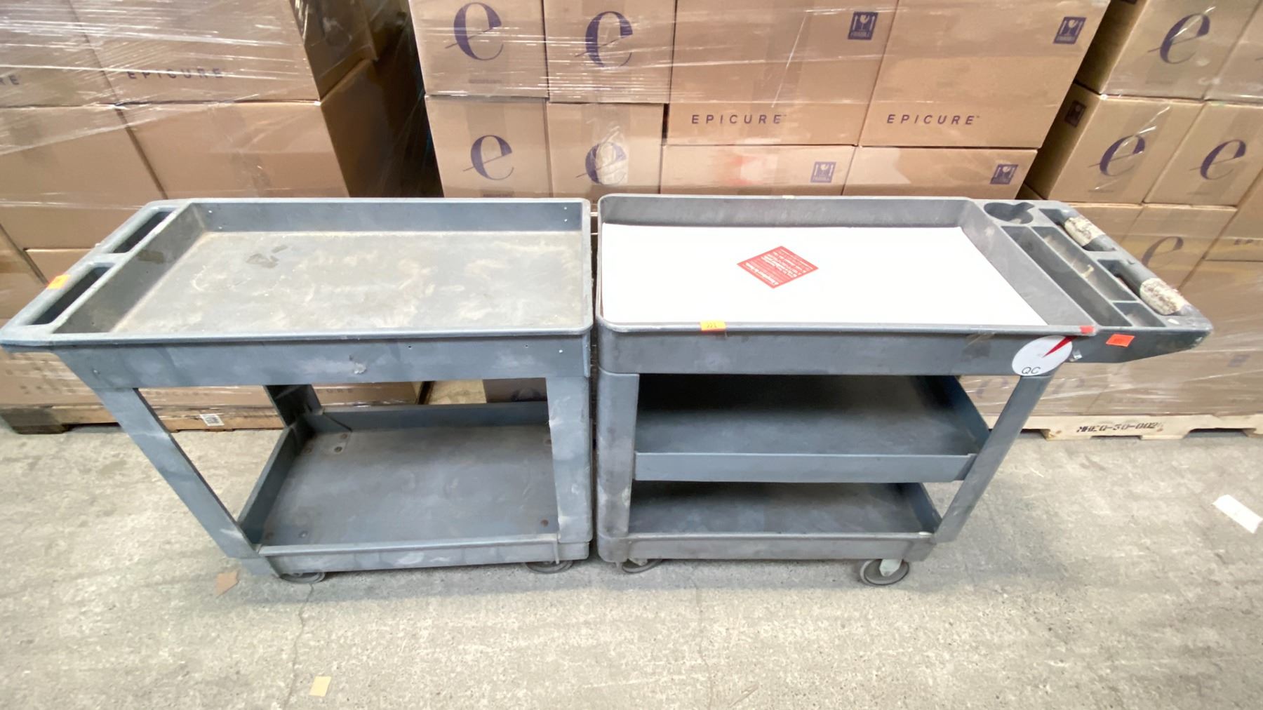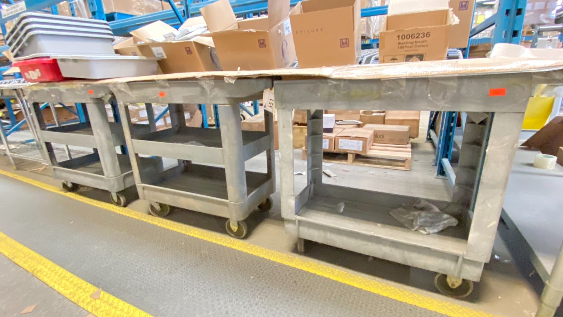 5 SMALL RUBBERMAID ROLLING CARTS 39"