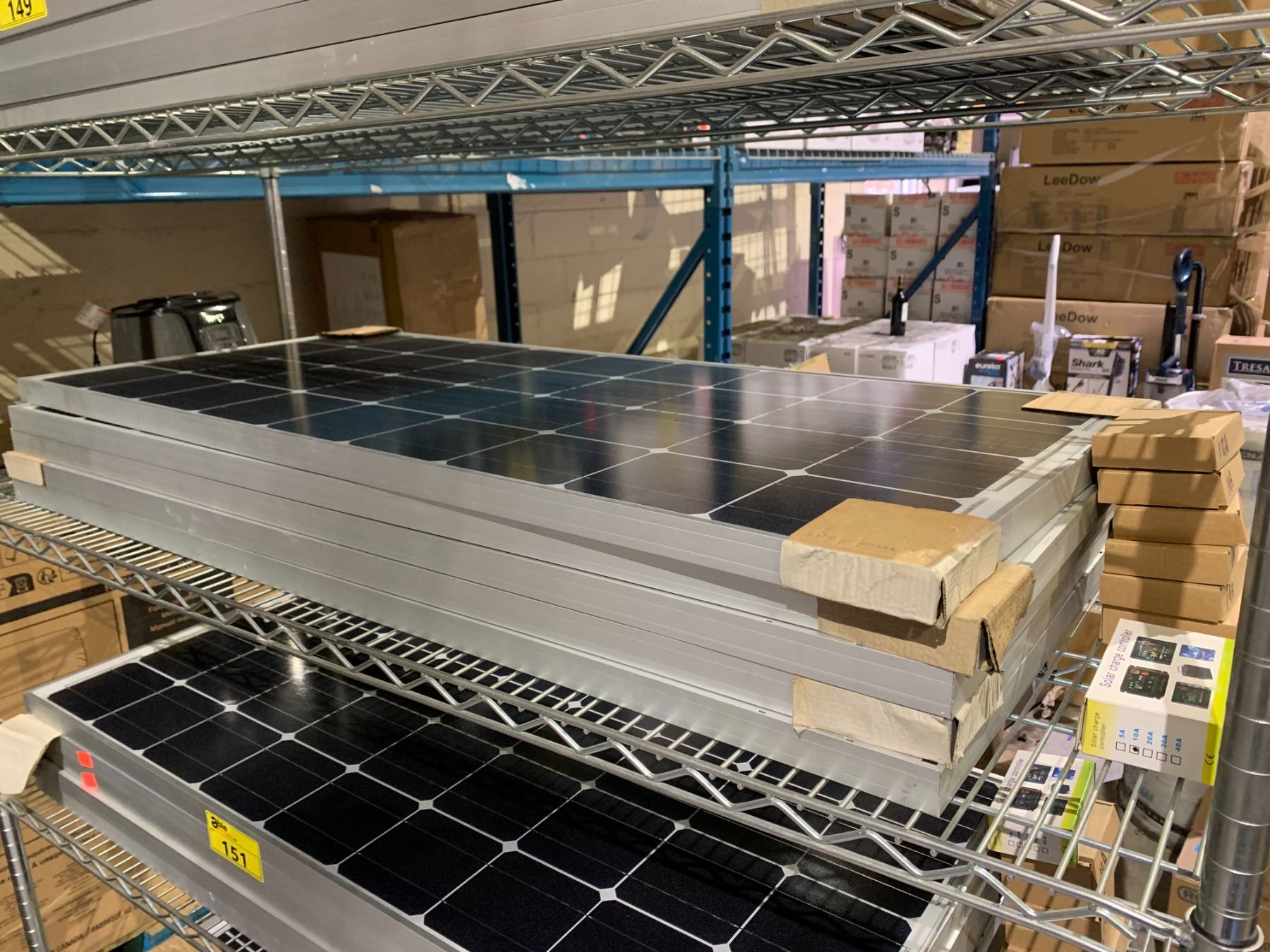 5 SOLAR PANELS BSM100M 1000W WITH SOLAR CHARGE CONTROLLER, 5 10A SOLAR CHARGE CONTROLLERS & 1 20A PWM SOLAR CHARGE CONTROLLER